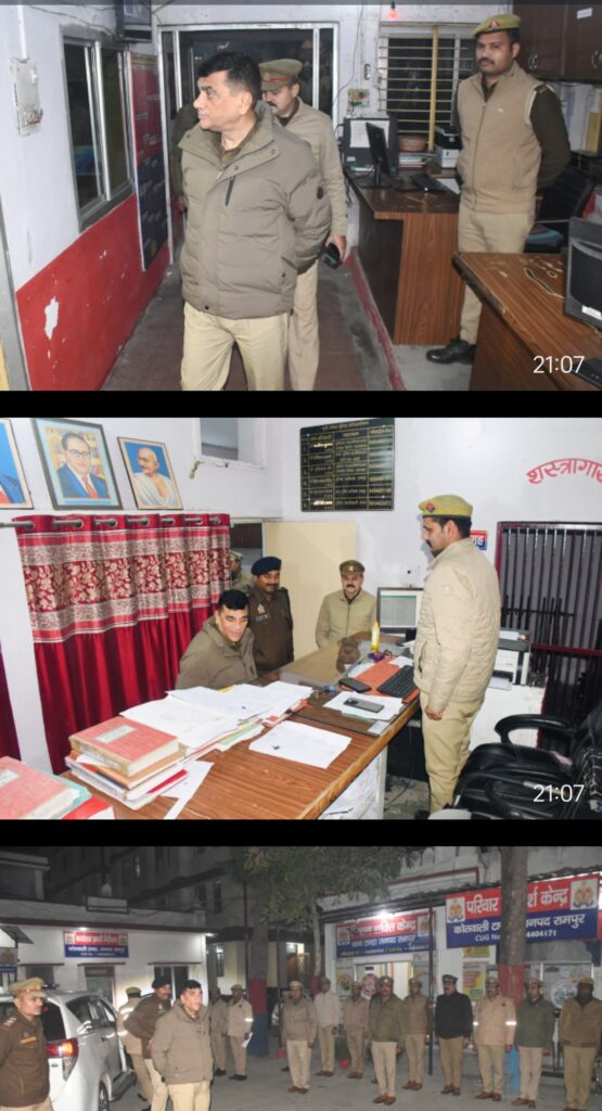 आज दिनांक 22.12.2025 को पुलिस अधीक्षक, रामपुर द्वारा अपर पुलिस अधीक्षक,रामपुर के साथ थाना टाण्डा का आकस्मिक निरीक्षण किया गया । निरीक्षण के दौरान थाना कार्यालय पर बने अपराध रजिस्टर, त्यौहार रजिस्टर, मालखाना रजिस्टर, विवेचना रजिस्टर, फ्लाई शीट आदि एवं उनके रख रखाव, साफ-सफाई, उनमें अंकित की जाने वाली प्रविष्टयों को चैक किया गया । साथ ही थाना परिसर मे बने कार्यालय, मालखाना, भोजनालय, हवालात, कम्प्यूटर कक्ष, मिशन शक्ति केन्द्र, साईबर सेल आदि की साफ- सफाई का जायजा लेकर सम्बन्धित को आवश्यक दिशा निर्देश दिये गये ।