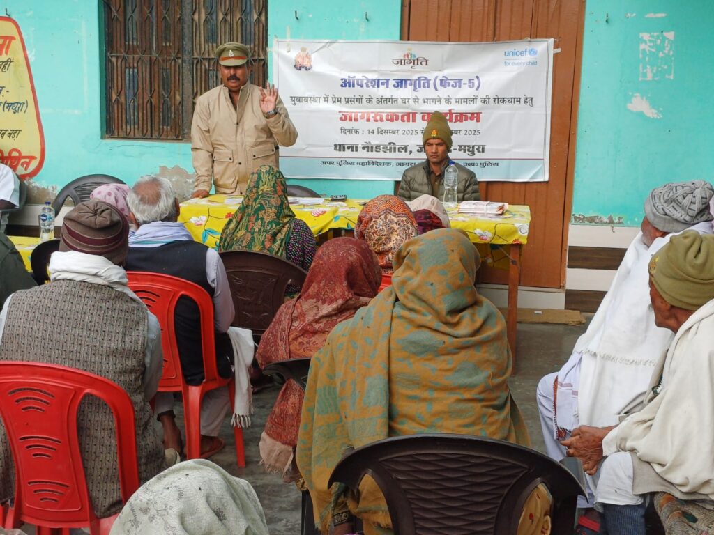 मुख्य: जनपद मथुरा के कस्बा बाजना पास दिनाँक 22.12.2025 को ऑपरेशन जागृति फेज 5 के तहत श्रीमान वरिष्ठ पुलिस अधीक्षक जनपद मथुरा के नेतृत्व थाना नोहझील पंचायत भवन पारसोली जनपद मथुरा में महिलाओं एवं बालिकाओं की सुरक्षा, सम्मान और स्वावलम्बन के विषय में जागरूक करते हुए उनके प्रति होने वाली हिंसा, झूठे मुकदमा दर्ज कराने एवं युवा एवं युवती के प्रेम प्रसंगों के चलते बिना बताए घर से पलायन, साइबर क्राइम तथा साइबर क्राइम से बचावों के तरीके, सोशल मीडिया का सुरक्षित उपयोग करने के विषय में जागरूकता, अनजान लिंक पर क्लिक न करने की हिदायत देते हुए अपना OTP किसी के साथ साझा न करने के लिए जागरुक किया गया । इसी के साथ महिला संबंधी अपराधों एवं उनकी कानूनी प्रक्रियाओं के विषय में जानकारी प्रदान की गई तथा आवश्यकता पड़ने पर उपयोग करने के लिए विभिन्न सरकारी योजनाओं एवं हेल्पलाइन नम्बरों मुख्यतः 1090 वीमेन पावर लाइन, 181 महिला हेल्पलाइन, 1076 मुख्यमंत्री हेल्पलाइन, 112 पुलिस आपातकालीन सेवा, 1098 चाइल्ड हेल्पलाइन, 102 स्वास्थ्य सेवा, 108 एम्बुलेंस सेवा आदि के विषय में जानकारी प्रदान की गई ।