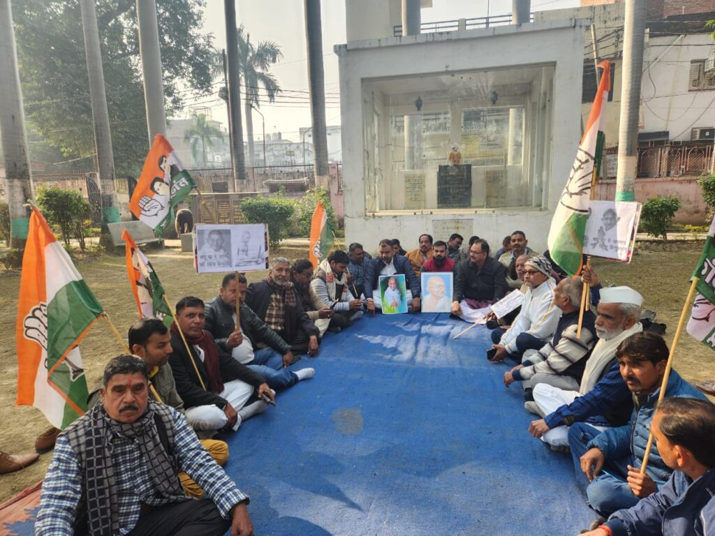 वहीं सैकड़ो कांग्रेसी गांधी जी की मूर्ति के पास बैठ गए, और रामधुन गाई। तदोपरांत एक जन सभा की गई, सभा में तमाम कांग्रेस जनों ने अपने अपने विचार रखें।
