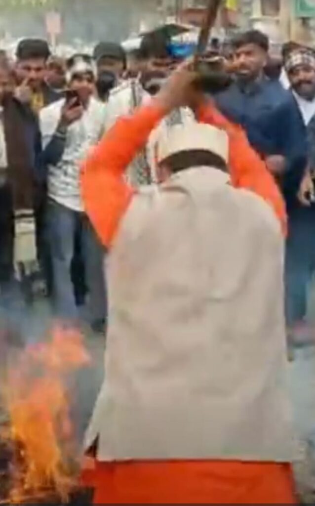 विहिप और बजरंग दल ने बांग्लादेश के खिलाफ फूँका पुतला।