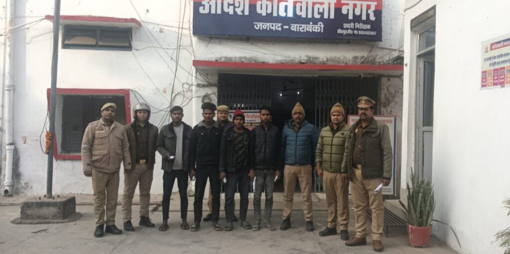 पुलिस अधीक्षक बाराबंकी श्री अर्पित विजयवर्गीय द्वारा जनपद में अपराध पर प्रभावी नियंत्रण लगाने हेतु अपराधियों के विरुद्ध चलाए जा रहे अभियान के क्रम में थाना कोतवाली नगर पुलिस टीम द्वारा मैनुअल इंटेलीजेन्स के आधार पर दिनांक 23.12.2025 को ओबरी जंगल के पास से 04 अभियुक्तगण 1. शुभम चौहान पुत्र विजय चौहान निवासी अमराई गांव थाना इन्दिरानगर जनपद लखनऊ, 2. राहुल गौतम पुत्र केशवराम निवासी हरिदास खेड़ा थाना चिनहट जनपद लखनऊ, 3. संदीप कुमार पुत्र शिवराम निवासी कल्याणपुरवा कालोनी थाना हरदी जनपद बहराइच, हाल पता- बीडीएस भट्ठा के पास हरिदास खेड़ा थाना चिनहट जनपद लखनऊ, 4. मोहम्मद दानिश पुत्र मोहम्मदजसीम निवासी गोयला मुरलीपुरवा थाना चिनहट जनपद लखनऊ को गिरफ्तार किया गया। अभियुक्तगण के कब्जे से 06 अदद हथगोला, 01 अदद तमंचा .315 बोर, 01 अदद जिन्दा कारतूस .315 बोर, 03 अदद मोबाइल फोन, 720/- रुपये नकद बरामद किया गया। अभियुक्तगण के विरुद्ध थाना कोतवाली नगर में मु0अ0सं0 1136/2025 धारा 5/9B विस्फोटक अधिनियम व 3/25 आर्म्स एक्ट पंजीकृत किया गया।