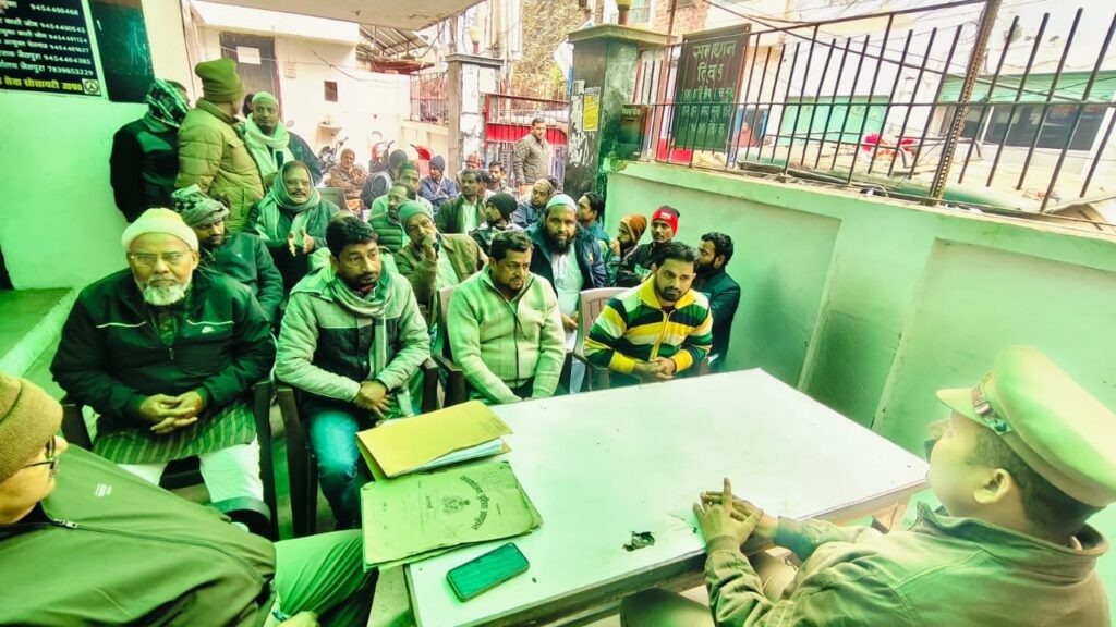 वाराणसी दिनांक 25,,,12,, 2025को थाना जैतपुरा में एक आवश्यक पीस कमेटी की बैठक किया गया मीटिंग थाना प्रभारी श्रीमान उदय प्रताप सिंह के नेतृत्व में क्षेत्रीगढ़ सभासद एवं संभ्रांत नगरीकरण एवं काशी नगरी की लोकप्रिय संस्था समाज सेवा सोसाइटी शाखा जैतपुरा के पदाधिकारी गढ़ एवं सदस्य मौजूद रहे मीटिंग का उद्देश्य क्षेत्र में विभिन्न प्रकार की समस्याएं एवं यातायात व्यवस्था को सुचारू रखने हेतु थाना प्रभारी द्वारा दिशा निर्देशन दिया गया। जिसमें सभी सम्राट नागरिक गढ भी महत्वपूर्ण बिंदुओं से अवगत कराया सभी समस्याओं को सुनकर गंभीरता से लेते हुए थाना प्रभारी श्रीमान उदय प्रताप सिंह जी द्वारा जल्द से जल्द समस्या का निवारण करने का आश्वासनभी दिया सभी क्षेत्रवासी द्वारा श्रीमान का स्वागत अभिनंदन भी किया गया धन्यवाद करते हुए थाना प्रभारी ने चाइनीस मंजे का भी इस्तेमाल न करने का भी लोगों को अवगत कराया यह भी बताया जो लोग इसकी क्रय विक्रय कर रहे हैं उन लोगों पर कठोर करवाई किया जाएगा यह बताया चाइनीस मांझी से कई लोगों की जान भी गई है या हमारे जीवन के लिए बहुत ही खतरनाक है सभी से अपील करते हुए थाना प्रभारी ने को इस्तेमाल न करने का आगरा किया आगे