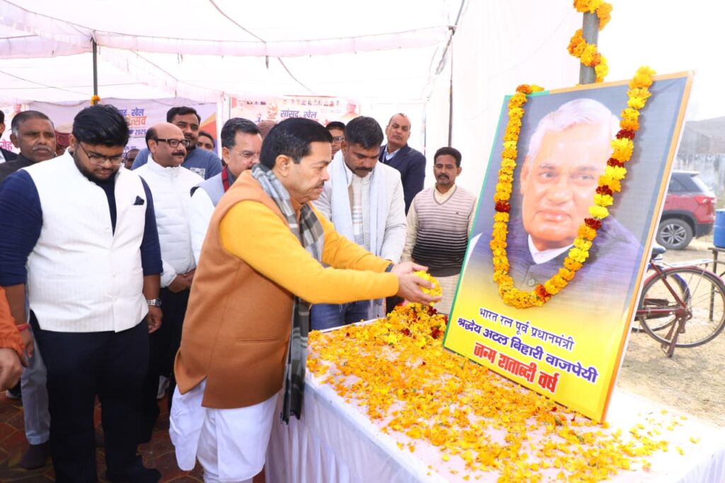 केंद्रीय राज्यमंत्री श्री बीएल वर्मा,सदर विधायक महेश चंद्र गुप्ता जिला अध्यक्ष राजीव गुप्ता जिला पंचायत अध्यक्षा वर्षा यादव ,पूर्व मंत्री विमल कृष्ण अग्रवाल एवं बड़ी संख्या खिलाड़ी के अलावा स्कूल के छात्र छात्राए भी मौजूद रहे. पार्टी कार्यकर्ताओं के साथ प्रधानमंत्री जी के प्रेरणादायी विचारों को उत्साहपूर्वक सुनाप्रधानमंत्री के विचारों ने फिट इंडिया, खेलो इंडिया एवं विकसित भारत के संकल्प को और अधिक सशक्त किया