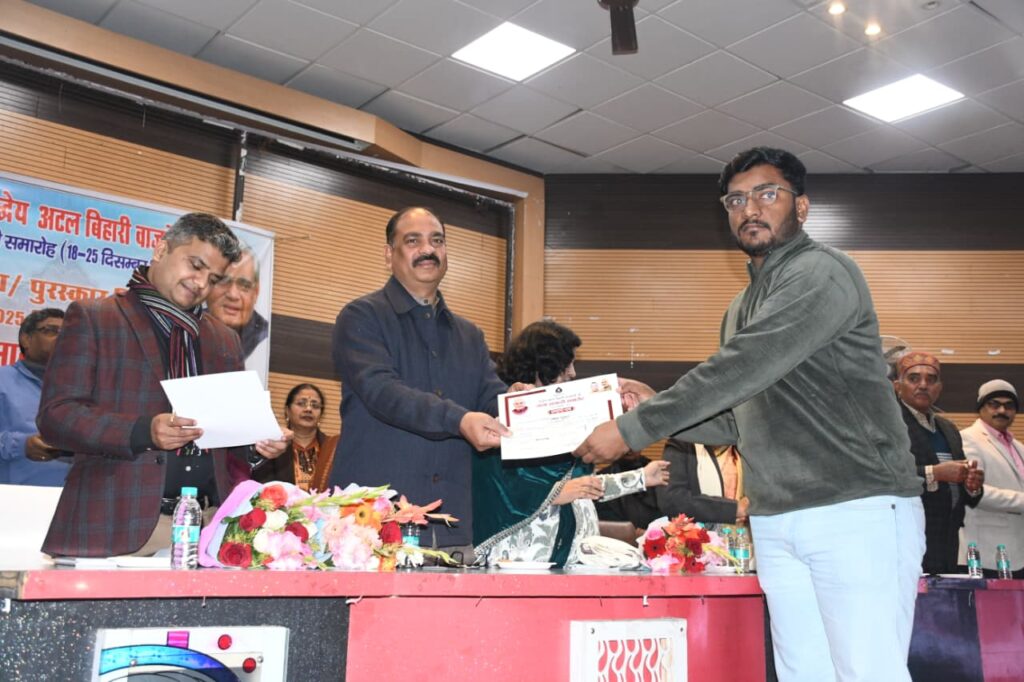 इस अवसर पर जिलाधिकारी मनीष कुमार वर्मा ने कहा कि पूर्व प्रधानमंत्री स्व0 अटल बिहारी वाजपेयी जी का जन्म शताब्दी समारोह पिछले एक वर्ष से चल रहा है, इसके अन्तर्गत विभिन्न विद्यालयों, शासकीय कार्यालयों में विभिन्न कार्यक्रमों का आयोजन किया गया। पूर्व प्रधानमंत्री जी का पूरा जीवन देश सेवा, समाज के सेवा के लिए समर्पित रहा। उन्होंने कहा कि आज हम सभी को यह प्रण लेना चाहिए कि हम जिस भी क्षमता में है, उसके अनुरूप हमें अपने देश के लिए कुछ करने का प्रण लेना चाहिए तथा समाज के अंतिम पायदान पर खड़े व्यक्ति को कैसे शासन की योजनाओं से लाभान्वित करा सकते है, इसके लिए निरंतर कार्य करना चाहिए। उन्होंने कहा कि मा0 प्रधानमंत्री जी का 2047 तक भारत को विकसित राष्ट्र बनाने का विजन है, हम सभी की यह जिम्मेदारी है कि उसके लिए हम सभी लोग व्यक्तिगत क्षमता, सामूहिक क्षमता के रूप में देश को आगे बढ़ाने में अपना योगदान दें। उन्होंने कहा कि हमारे देश का पुराना वैभवशाली इतिहास रहा है, उसे पुनः प्राप्त करने लिए हम सभी को मिलकर कार्य करते हुए अपना योगदान देना होगा। कार्यक्रम का संचालन डॉ0 प्रभाकर त्रिपाठी के द्वारा किया गया।