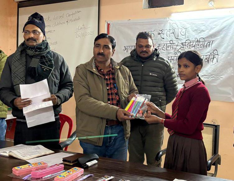 मसौली,बाराबंकी। ब्लॉक संसाधन केंद्र (बड़ागांव)मसौली में खंड शिक्षा अधिकारी जैनेंद्र कुमार के कुशल मार्गदर्शन एवं नेतृत्व में ब्लॉक स्तरीय कविता प्रतियोगिता कक्षा 1 से 3, कहानी प्रतियोगिता कक्षा 4 से 5 तथा भाषण प्रतियोगिता कक्षा 6 से 8 के बच्चों की सम्पन्न हुई।इस अवसर पर ब्लॉक के विभिन्न परिषदीय विद्यालयों के विद्यार्थियों ने अपूर्व उत्साह, आत्मविश्वास, सृजनात्मक चेतना एवं प्रभावी भाषिक कौशल का अनुकरणीय परिचय देते हुए अपनी प्रतिभा का उत्कृष्ट प्रदर्शन किया। कार्यक्रम का मूल उद्देश्य बालकों में रचनात्मक अभिव्यक्ति, वक्तृत्व क्षमता, साहित्यिक संवेदना तथा मंचीय आत्मविश्वास का सर्वांगीण विकास करना रहा।प्रतियोगिताओं के घोषित परिणाम में कविता प्रतियोगिता कक्षा 1 से 3 में प्रथम स्थान प्राथमिक विद्यालय बड़ागांव 2 की आन्या, द्वितीय स्थान प्राथमिक विद्यालय मेंढिया के अनस, तृतीय स्थान प्राथमिक विद्यालय जकरिया की नाजिया एवं कहानी प्रतियोगिता कक्षा 4 से 5 में प्रथम स्थान आराध्या प्राथमिक विद्यालय मेढ़िया,द्वितीय स्थान राधिका कंपोजिट विद्यालय मुबारकपुर, तृतीय स्थान छवि वर्मा कंपोजिट विद्यालय इचौलिया एवं भाषण प्रतियोगिता कक्षा 6 से 8 मेंप्रथम स्थान रागिनी उच्च प्राथमिक विद्यालय टेरासानी,द्वितीय स्थान छवि वर्मा कंपोजिट विद्यालय इचौलिया,तृतीय स्थान हेमंत यादव उच्च प्राथमिक विद्यालय बांसा को प्रतियोगिता में चयनित किया गया। खण्ड शिक्षा अधिकारी जैनेंद्र कुमार ने बताया कि सभी चयनित प्रतिभागियों को जिला स्तरीय प्रतियोगिता में प्रतिभाग हेतु संबंधित विद्यालयों के