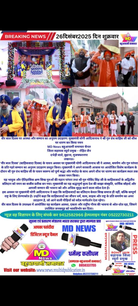 वीर बाल दिवस पर आस्था और सम्मान का अनुपम उदाहरण: मुख्यमंत्री योगी आदित्यनाथ ने श्री गुरु ग्रंथ साहिब जी को शीश पर धारण कर किया नमन