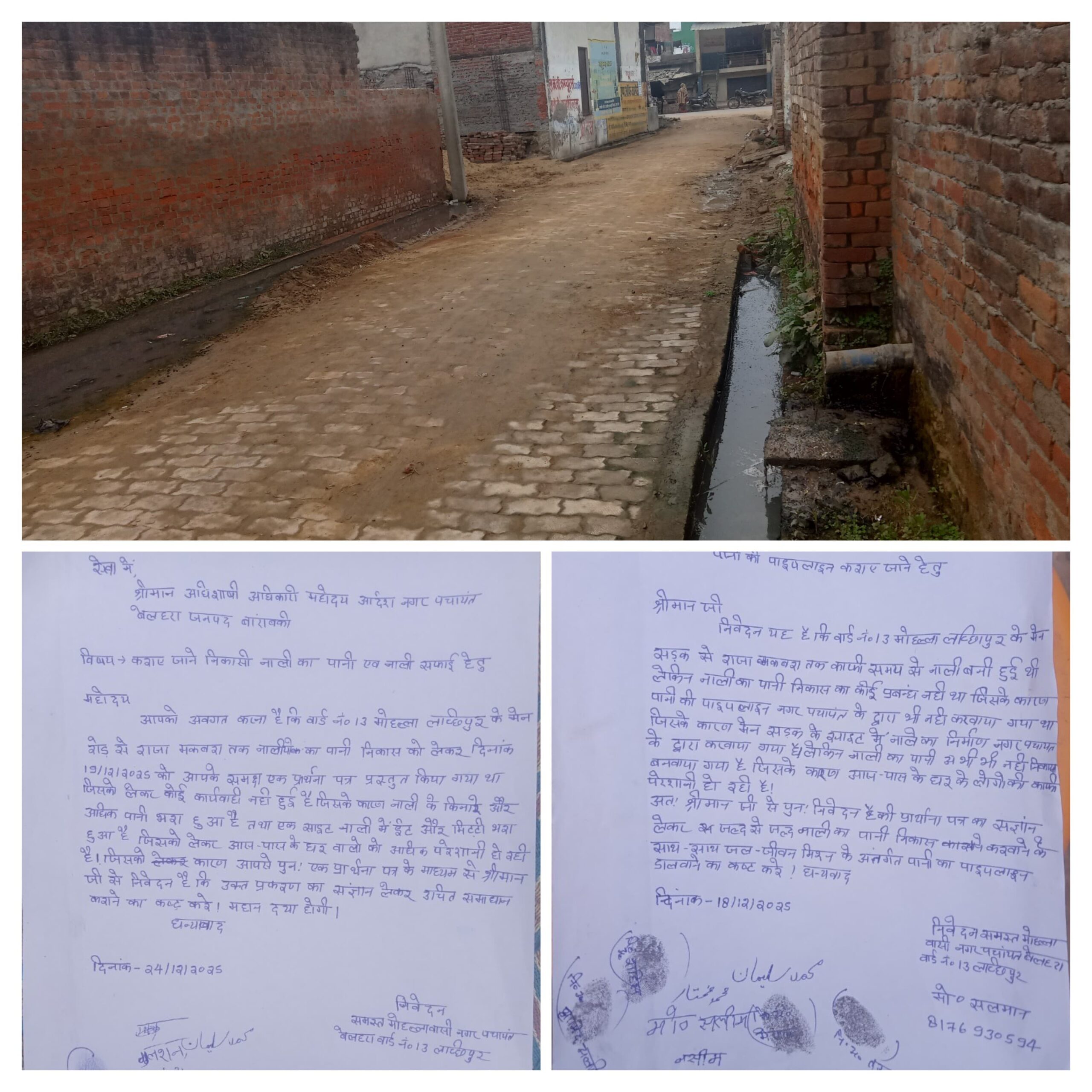 बेलहरा/बाराबंकी।नगर पंचायत बेलहरा में नाली सफाई व्यवस्था पूरी तरह चरमराई हुई है, जिसके चलते स्थानीय नागरिकों को भारी परेशानी का सामना करना पड़ रहा है। जानकारी के अनुसार नगर पंचायत बेलहरा के वार्ड संख्या 13 लच्छीपुर में नगर पंचायत कार्यालय से लगभग तीन सौ मीटर दूरी पर बेलहरा۔महमूदाबाद मुख्य मार्ग से सटे मेन चौराहे पर मुख्य मार्ग से लेकर राजा मकबरा मार्ग तक स्थित नालियों में लंबे समय से पानी की उचित निकासी नहीं हो पा रही है।