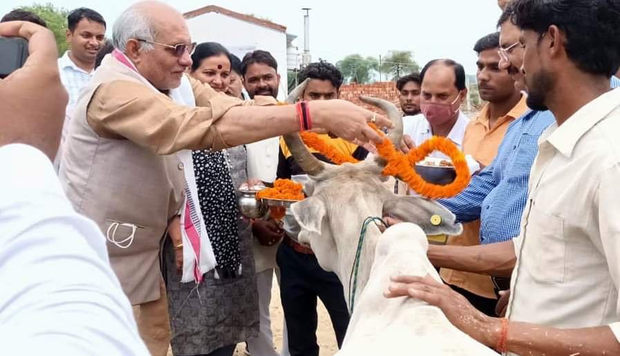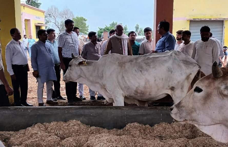 बदायूँ : धर्मपाल सिंह, मंत्री, पशुधन, दुग्ध विकास, मत्स्य पालन, अल्पसंख्यक एवं वक्फ उत्तर प्रदेश सरकार द्वारा जनपद का औचक भ्रमण किया गया। उनके द्वारा बृहद गो संरक्षण केंद्र रफियाबाद का निरीक्षण किया गया। मंत्री एवं अध्यक्षा नगर पालिका दीपमाला गोयल द्वारा गाय को गुड़ खिलाकर गौ पूजन किया गया। वृहद गौ संरक्षण केंद्र पर 305 स्वस्थ गोवंश पाई गई। पर्याप्त मात्रा में भूसा एवं हरा चारा पाया गया, उनके द्वारा गोवंश के रखरखाव पर संतोष व्यक्त किया गया। बृहद गौ संरक्षण केंद्र के परिसर में गोबर से पेंट बनाने वाली फैक्ट्री का निरीक्षण किया गया, जो पार्वती स्वयं सहायता समूह घटपुरी विकासखंड सालारपुर द्वारा संचालित है ।
