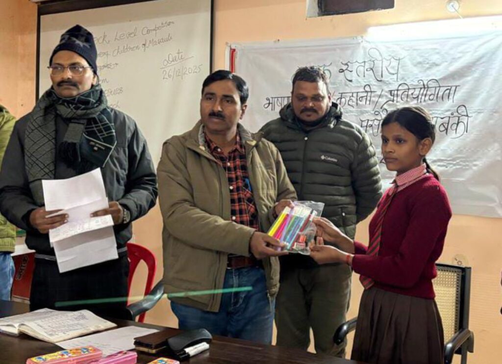 मसौली,बाराबंकी। ब्लॉक संसाधन केंद्र (बड़ागांव)मसौली में खंड शिक्षा अधिकारी जैनेंद्र कुमार के कुशल मार्गदर्शन एवं नेतृत्व में ब्लॉक स्तरीय कविता प्रतियोगिता कक्षा 1 से 3, कहानी प्रतियोगिता कक्षा 4 से 5 तथा भाषण प्रतियोगिता कक्षा 6 से 8 के बच्चों की सम्पन्न हुई।इस अवसर पर ब्लॉक के विभिन्न परिषदीय विद्यालयों के विद्यार्थियों ने अपूर्व उत्साह, आत्मविश्वास, सृजनात्मक चेतना एवं प्रभावी भाषिक कौशल का अनुकरणीय परिचय देते हुए अपनी प्रतिभा का उत्कृष्ट प्रदर्शन किया। कार्यक्रम का मूल उद्देश्य बालकों में रचनात्मक अभिव्यक्ति, वक्तृत्व क्षमता, साहित्यिक संवेदना तथा मंचीय आत्मविश्वास का सर्वांगीण विकास करना रहा।प्रतियोगिताओं के घोषित परिणाम में कविता प्रतियोगिता कक्षा 1 से 3 में प्रथम स्थान प्राथमिक विद्यालय बड़ागांव 2 की आन्या, द्वितीय स्थान प्राथमिक विद्यालय मेंढिया के अनस, तृतीय स्थान प्राथमिक विद्यालय जकरिया की नाजिया एवं कहानी प्रतियोगिता कक्षा 4 से 5 में प्रथम स्थान आराध्या प्राथमिक विद्यालय मेढ़िया,द्वितीय स्थान राधिका कंपोजिट विद्यालय मुबारकपुर, तृतीय स्थान छवि वर्मा कंपोजिट विद्यालय इचौलिया एवं भाषण प्रतियोगिता कक्षा 6 से 8 मेंप्रथम स्थान रागिनी उच्च प्राथमिक विद्यालय टेरासानी,द्वितीय स्थान छवि वर्मा कंपोजिट विद्यालय इचौलिया,तृतीय स्थान हेमंत यादव उच्च प्राथमिक विद्यालय बांसा को प्रतियोगिता में चयनित किया गया। खण्ड शिक्षा अधिकारी जैनेंद्र कुमार ने बताया कि सभी चयनित प्रतिभागियों को जिला स्तरीय प्रतियोगिता में प्रतिभाग हेतु संबंधित विद्यालयों के