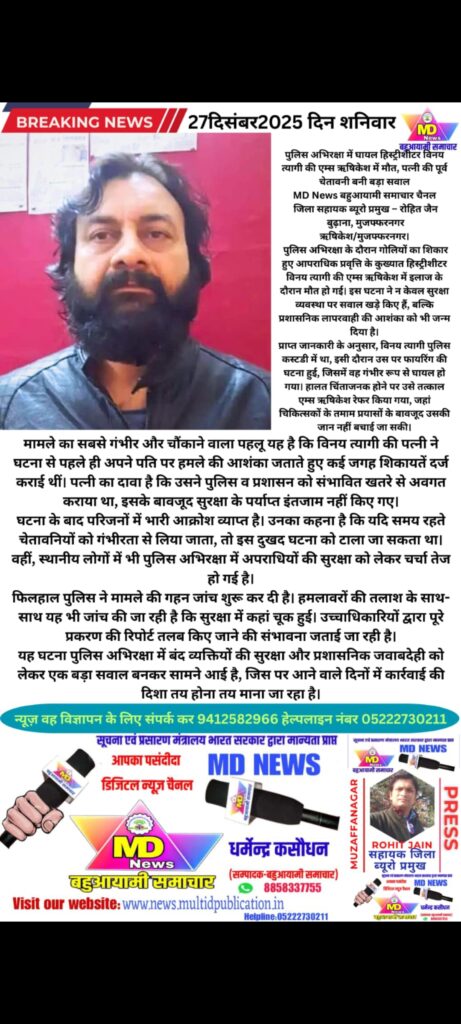 MD News बहुआयामी समाचार चैनल जिला सहायक ब्यूरो प्रमुख – रोहित जैन बुढ़ाना, मुजफ्फरनगर