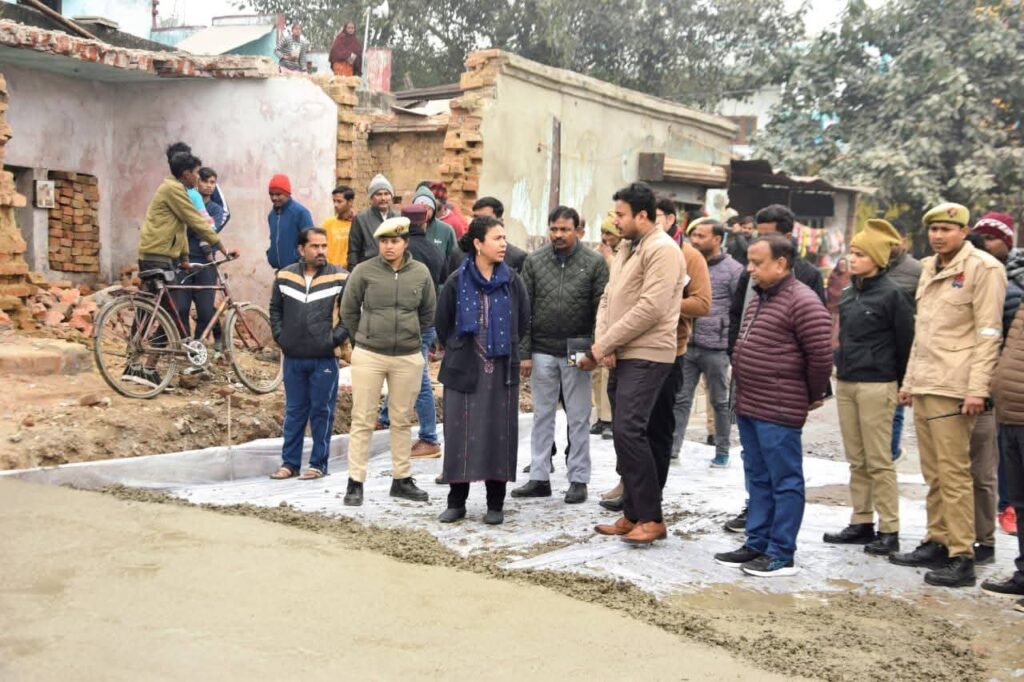 इसके बाद डीएम दुर्गा शक्ति नागपाल ने मिदनियां तिराहे से एसएसबी के आगे तक निर्माणाधीन सड़क के चौड़ीकरण, सुदृढ़ीकरण एवं नाली निर्माण कार्य का निरीक्षण किया। उन्होंने मौके पर कार्य की प्रगति की समीक्षा की और विद्युत पोल शिफ्टिंग में हो रही धीमी प्रगति पर नाराजगी जताई। डीएम ने अधिशासी अभियंता विद्युत शैलेंद्र कुमार को निर्देश दिए कि वे स्वयं मॉनिटरिंग करते हुए पोल शिफ्टिंग कार्य को शीघ्र पूर्ण कराएं। साथ ही, जिला पंचायत के मौजूद अधिकारियों को इंटरलॉकिंग कार्य समयबद्ध तरीके से पूरा कराने के निर्देश दिए।