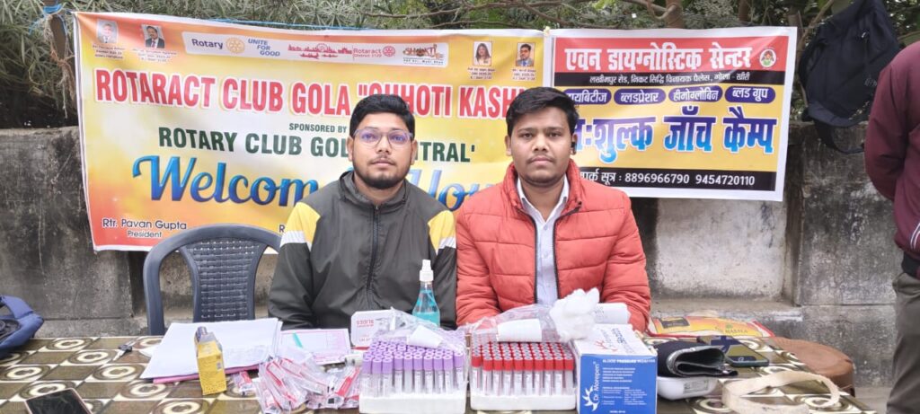 गोला में रोट्रैक्ट क्लब गोला छोटी काशी व रोटरी क्लब गोला सेंट्रल के संयुक्त तत्वाधान एवं एवन डायग्नोस्टिक सेंटर के सहयोग से डिस्ट्रिक्ट प्रोजेक्ट संजीवनी के तहत कांशीराम आवास कॉलोनी गोला गोकर्णनाथ में फ्री मेडिकल कैंप का आयोजन स्वास्थ्य सेवाओं को जरूरतमंदों तक पहुंचाने,बीमारियों के प्रति जागरूकता फैलाने और प्राथमिक स्वास्थ्य जांच के लिए किया गया।।कार्यक्रम प्रभारी के रूप में संस्था अध्यक्ष पवन गुप्ता जी ने कार्य किया।