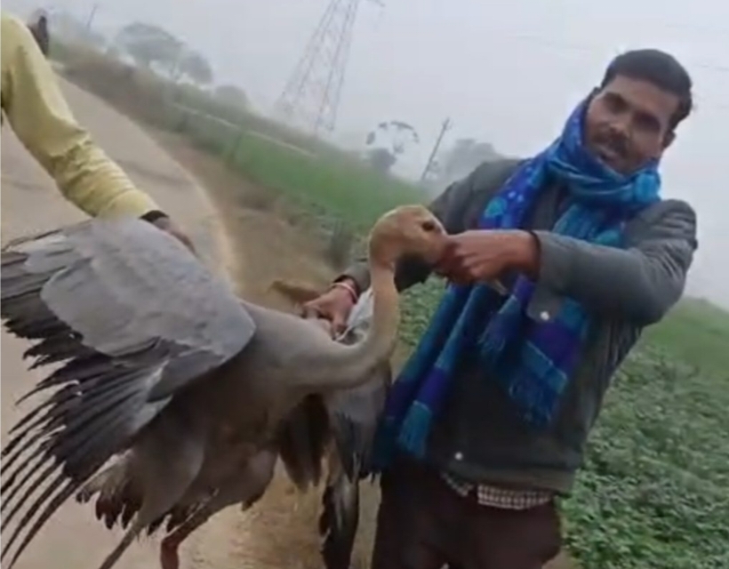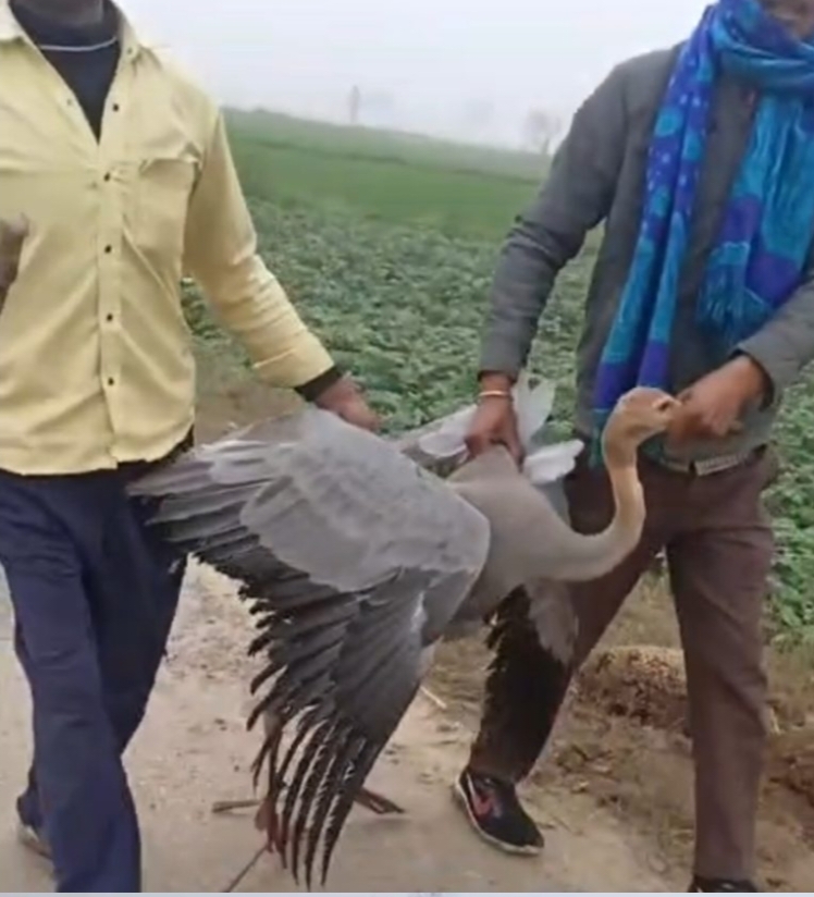 हाइटेंशन लाइन की चपेट में आ कर राजकीय पक्षी सारस घायल