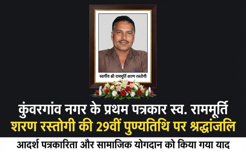 जिसमें दिवंगत पत्रकार के छायाचित्र पर पुष्प अर्पित कर श्रद्धांजलि दी गई।गोष्ठी में उपस्थित वक्ताओं ने स्वर्गीय राममूर्ति शरण रस्तोगी के आदर्श पत्रकारिता जीवन, सामाजिक सरोकारों और नगर के विकास में उनके अमूल्य योगदान को याद किया। वक्ताओं ने कहा कि उन्होंने अपने जीवन में निष्पक्षता, निर्भीकता और जनहित को सर्वोपरि रखते हुए