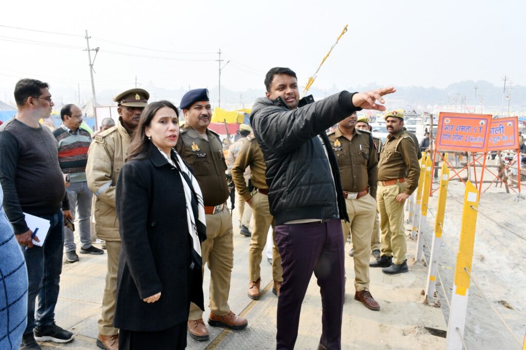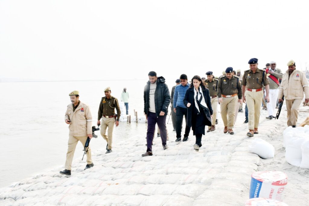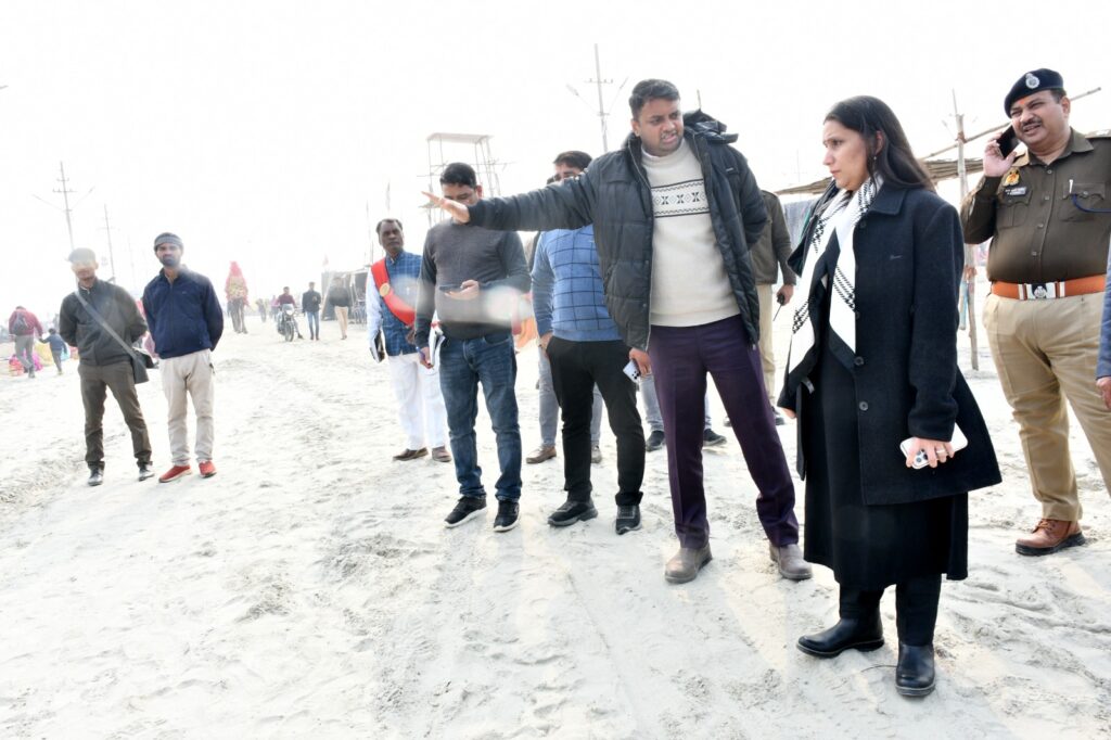 *प्रयागराज मण्डलायुक्त श्रीमती सौम्या अग्रवाल ने मेलाधिकारी श्री ऋषिराज एवं एसएसपी मेला श्री नीरज पाण्डेय के साथ गुरूवार को माघ मेला-2026 के दृष्टिगत हो रही तैयारियों का निरीक्षण कर जायजा लिया तथा सभी सम्बंधित अधिकारियों को आवश्यक दिशा-निर्देश दिए। उन्होंने सर्वप्रथम संगम नोज पर स्नानार्थिंयों के लिए बनाये जा रहे घाटों का निरीक्षण किया। उन्होंने संगम नोज पर प्रमुख स्नान पर्वों पर स्नानार्थिंयों के लिए सर्कुलेटिंग एरिया बढ़ाये जाने के कार्य व स्नान हेतु घाटों के विस्तारीकरण एवं संगम नोज पर गंगा नदी के तेज प्रवाह के कारण संकरे हुए स्नानघाट की चौड़ाई किस प्रकार बढ़ायी जाये, जिससे ज्यादा से ज्यादा स्नानार्थिंयों को सुरक्षित एवं चौड़ा घाट उपलब्ध हो सके, के लिए आवश्यक दिशा-निर्देश सम्बंधित अधिकारियों को दिए। मण्डलायुक्त ने अधिकारियों के साथ माघ मेला-2026 में सुगम स्नान हेतु संगम नोज से लेकर कालीमार्ग तक बनाये गये प्रत्येक घाट का निरीक्षण किया तथा वहां पर सभी आवश्यक व्यवस्थायें सुनिश्चित करने के निर्देश दिए है। उन्होंने घाटों के पास जमीन के समतलीकरण, वहां पर साफ-सफाई का विशेष ध्यान दिए जाने, चेंजिंग रूम, साइनेज तथा आने व जाने का मार्गों पर दिशा सूचक चिन्ह लगाये जाने, विद्युत पोलों पर नम्बरिंग करने तथा स्नान घाटों पर पानी में जहां पर अभी बैरिकेटिंग नहीं बनायी गई है, वहां पर बैरिकेटिंग लगाये जाने के निर्देश दिए है। उन्होंने संगम नोज सहित सभी स्नान घाटों पर भीड़ नियंत्रण की व्यवस्था के बारे में विचार-विमर्श किया।मण्डलायुक्त ने वरिष्ठ अधिकारियों के साथ लेटे हनुमान जी मंदिर में दर्शन पूजन किया तथा निर्माणाधीन कॉरिडोर के प्रगति के बारे में जानकारी ली। उन्होंने परिसर में साफ-सफाई के निर्देश दिए है। तत्पश्चात मण्डलायुक्त ने बाघम्बरी मठ के श्रीमहंत बलवीर गिरि जी महाराज से मुलाकात कर लेटे हनुमान जी मंदिर में आने वाले श्रद्धालुआंें एवं दर्शनार्थिंयों के दर्शन पूजन की व्यवस्था पर विचार-विमर्श किया।