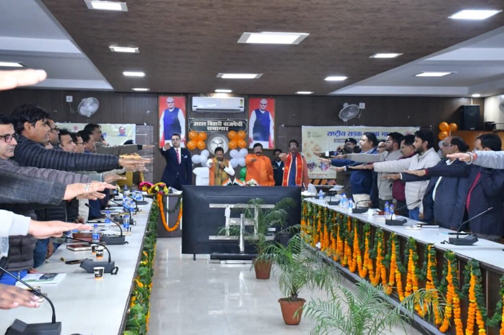 बदायूँ : 01 जनवरी। बीमारियों से ज्यादा मृत्यु सड़क दुर्घटनाओं में हो जाती हैं। इसी के दृष्टिगत 01 से 31 जनवरी 2026 तक राष्ट्रीय सड़क सुरक्षा माह मनाया जाएगा। सड़क सुरक्षा माह का विधिवत उद्घाटन कलेक्ट्रेट स्थित अटल बिहारी वाजपेयी सभागार में आयोजित कार्यक्रम में केंद्रीय राज्य मंत्री बीएल वर्मा ने किया वहीं उन्होंने सभी को सड़क सुरक्षा की शपथ दिलवाई व जागरुकता प्रचार वाहन को हरी झण्डी दिखाकर रवाना किया।