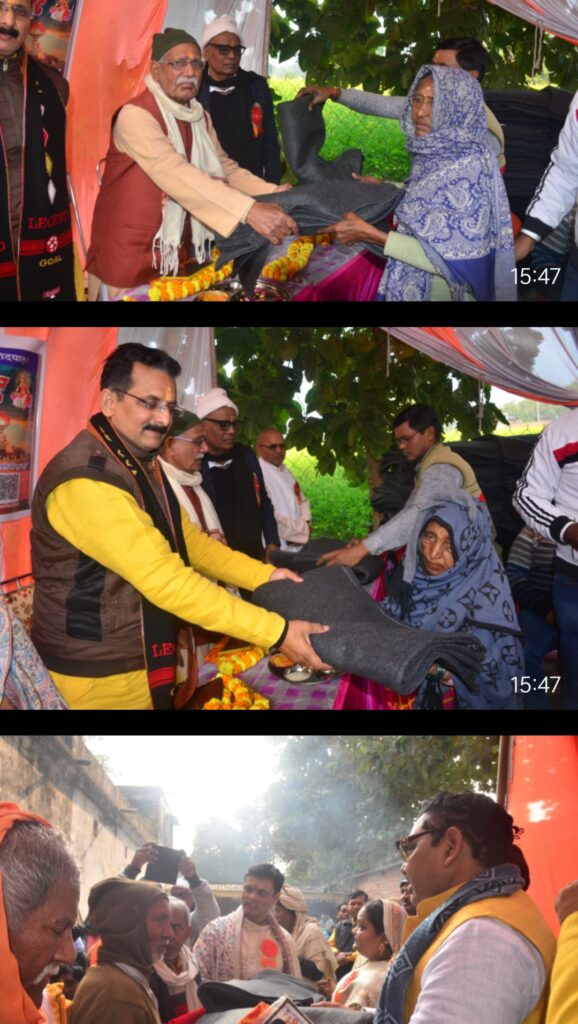 वाराणसी माँ गायत्री जन सेवा ट्रस्ट रजला (कुशही) चोलापुर के द्वारा नव वर्ष के मौके पर ठंड से राहत के लिए बुजुर्गो, असहाय, महिलाओ सहित करीब 200 लोगों को दिया कम्बल वितरण किया गया| साथ ही नव वर्ष के मौके पर आसपास के गाँव के उपस्थित बच्चों भरपूर नाश्ता कराया गया,आपको बता दे की हर वर्ष की भांति इस बार नव वर्ष के पहले दिन माँ गायत्री जन सेवा ट्रस्ट रजला (कुसही) चोलापुर क्षेत्र में कड़ाके की ठंड के बीच असहाय व वृद्ध जनों को निःशुल्क कम्बल का वितरण किया गया। बृहस्पतिवार को दोपहर में ट्रस्ट के संस्थापक/समाजसेवी व डॉ गौरी शंकर दूबे ने प्रतिवर्ष की भांति इस वर्ष भी क्षेत्र के रजला, उद्योरामपुर, बाबतपुर, कुरौली, नियारडीह, हथियरकला, पूरेधुरशाह, अजगरा गाँव के करीब 200 असहाय व वृद्धजनों को कम्बल दिया। कार्यक्रम के मुख्य अतिथि श्री कृष्णानंद पाण्डेय, विशिष्ट अतिथि श्री अनिल मिश्रा (बबलू गुरु), व उनकी धर्मपत्नी श्रीमती किरन मिश्रा, श्री कपिल नारायण पाण्डेय व कार्यक्रम अध्यक्षता श्री वीरेंद्र सिंह (प्रबंधक आदर्श इंटर कॉलेज रेहारी के द्वारा किया गया,इस दौरान आसपास के 20 गांव के ग्राम प्रधान, समाजसेवी उपस्थित थे, कार्यक्रम का संचालन श्री संतोष शुक्ला ने किया, इस कार्यक्रम में प्रमुख रूप से श्री शिवाजी सिंह,श्री मनोज चौबे (प्रबंधक सरला लर्नर्स एकेडमी ), हरिमंगल सिंह, अभिमन्यु सिंह, शैल मिश्रा,श्री गोपाल सिंह, कमला राजभर (प्रधान) रमेश माली, संदीप मिश्रा, विनय श्रीवास्तव, जुगुनू यादव, गणेश चौरसिया, गुड्डू मौर्या (प्रधान) छोटू चौबे, संजय नाविक,सहित क्षेत्र के सभी समाजसेवी प्रमुख रूप से उपस्थित थे, कार्यक्रम का धन्यवाद ज्ञापन श्री कपिल नारायण पाण्डेय (ट्रस्ट के संरक्षक) व अध्यक्ष डॉ गौरी शंकर दूबे ने किया,