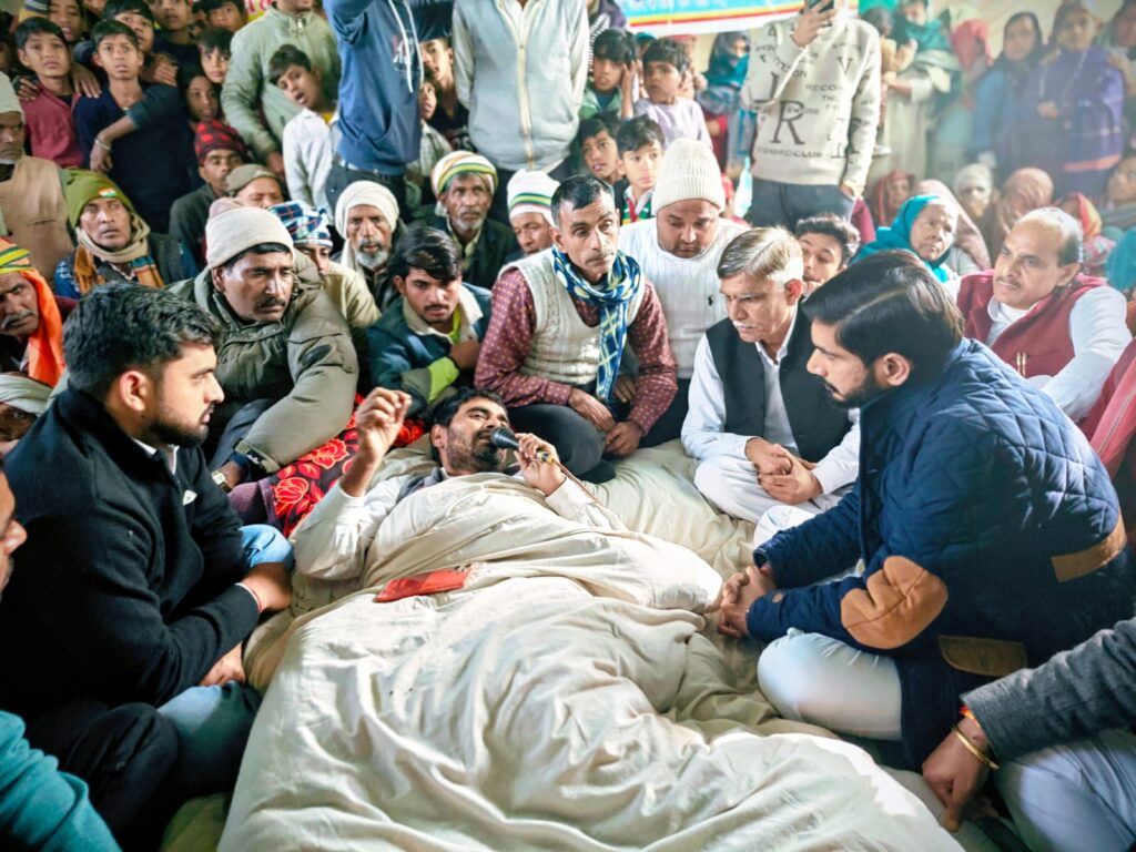 जहाँ सड़क निर्माण की मांग को लेकर हड़ताल पर बैठे ग्रामीणों से मुलाकात की। ग्रामीणों ने सांसद को वर्षों से जर्जर अवस्था में पड़े संपर्क मार्ग की समस्या से अवगत कराया। सांसद ने ग्रामीणों की बातों को गंभीरता से सुना और उन्हें भरोसा दिलाया कि इस महत्वपूर्ण मार्ग के निर्माण के लिए वे स्वयं माननीय मुख्यमंत्री जी एवं संबंधित विभाग के आला अधिकारियों से वार्ता करेंगे। उन्होंने कहा कि जल्द से जल्द बजट स्वीकृत कराकर सड़क निर्माण कार्य प्रारंभ कराया जाएगा, ताकि क्षेत्रवासियों को आवागमन में हो रही कठिनाइयों से राहत मिल सके। 11 दिन से सड़क निर्माण को लेकर अनशन में बैठे ग्रामीणों को माननीय सांसद श्री आदित्य यादव जी में फल खिलाकर अनशन खत्म कराया I इस मौके और सपा जिलाध्यक्ष आशीष यादव, विधानसभा सभा अध्यक्ष सुरेंद्र यादव, राजेंद्र गुरु,बादाम सिंह, महेंद्र सिंह, राहुल यादव, चंद्रकेश यादव, राकेश प्रजापति, जयपाल सिंह, सुरेंद्र सागर, खजाना देवी, राकेश प्रजापति, राहुल यादव, चंद्रभान सिंह, भूपेंद्र दिवाकर, विकास, सोमेश प्रताप, उदयवीर सहित प्रमुख लोग उपस्थित रहे।