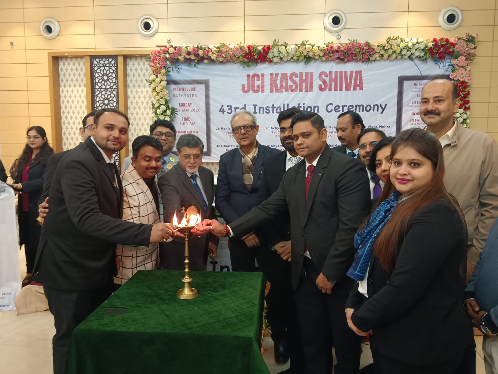 वाराणसी आज रथयात्रा स्थित शगुन बैंक्वेट में जेसीआई काशी शिवा का 43वां अधिष्ठापन समारोह सम्पन्न हुआ । कार्यक्रम के मुख्य अतिथि दीपक बहल (एमडी, ड्रीमलैंड होल्डिंग्स लिमिटिड) एवं विशिष्ट अतिथि जेसीआई जोन-3 के मंडलाध्यक्ष जेसीआइ सेनिटोर गौरव सेठ रहें।इस कार्यक्रम की शुरुआत जेसी आस्था से हुई एवं उसके बाद सभी गणमान्य विभूतियों ने दीप प्रज्ज्वलन कर कार्यक्रम की शुरुआत की। निवर्तमान अध्यक्ष जेसी एचजीएफ मनीष श्रीवास्तव ने अपने कार्यकाल में उत्कृष्ट कार्य हेतु योगदान देने वाले सभी सदस्यों को सम्मान पूर्वक स्मृति चिन्ह प्रदान किया एवं अपने दिल की भावनाओं को प्रतिवेदन द्वारा उजागर किया तत्पश्चात जेसी उत्कर्ष बरनवाल को वर्ष 2026 के अध्यक्ष पद की शपथ दिलाई। इसके पश्चात जेसीआई काशी शिवा के “पुट वेस्ट टू वर्क” के तहत 5 से 15 वर्षीय जूनियर जेसी द्वारा वेस्ट से रीसायकल किए वस्तुओं की प्रदर्षनी लगी।कार्यक्रम के मुख्या अतिथि दीपक बहल (एमडी, ड्रीमलैंड होल्डिंग्स लिमिटिड) जी ने अपने उद्धबोधन में जेसीआई कशी शिवा द्वारा विगत वर्षों में किए गए कार्यों की सराहना की एवं कार्यक्रम की विशित अतिथि जेसीआई जोन-3 के मंडलाध्यक्ष जेसीआइ सेनिटोर गौरव सेठ जी ने संस्था के द्वारा किए गये कार्यक्रमों की भूरी-भूरी प्रशंशा की और जेसीआई काशी शिवा के आने वाले वर्षों में सामाजिक कार्यों में अपनी प्रतिभागिता की इक्षा ज़ाहिर की। उप मंडलाध्यक्षा जेसी तन्वी अग्रवाल ने जेसीआई संस्था के नए सदस्यों को शपथ दिलाई। कीनोट स्पीकर जेसीआई इंडिया के पूर्व राष्टीय उपाध्यक्ष रवि प्रकाष गुप्ता जेसीआई संस्था के ट्रेनिंग्स की महत्ता के बारे में अवगत कराया। इस समारोह में अध्याय के सभी पूर्व अध्यक्षों समेत जेसी श्याम जलान, जेसी अनुराग पांडेय, जेसी राम धनानी, जेसी विकस मेहरा, जेसी दीपचंद वर्मा, जेसी अभिषेक जोशी, जेसी दीप्ति मेहरोत्रा, जेसी ज्योति भारद्वाज, जेसी स्वीटी बरनवाल, जेसी शालिनी पांडेय आदि उपस्थित रहे।