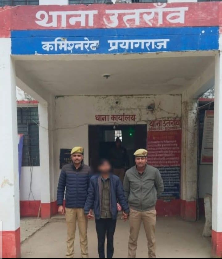 प्रयागराज |* पुलिस आयुक्त व अतिरिक्त पुलिस आयुक्त के निर्देशन में अपराध एवं अपराधियों के विरुद्ध चलाये जा रहे अभियान के क्रम में श्रीमान् पुलिस उपायुक्त व अपर पुलिस उपायुक्त गंगानगर के पर्यवेक्षण में व सहायक पुलिस आयुक्त हण्डिया के कुशल नेतृत्व में गंगानगर-जोन के थाना उतरांव पर पंजीकृत मु0अ0सं0-01/2026 धारा-80(2)/85 भा0न्या0सं0 व 3/4 डी0पी0 एक्ट से सम्बन्धित वांछित अभियुक्त राहुल भारतीया पुत्र राजेश भारतीया निवासी मण्डौर थाना उतरांव कमिश्नरेट प्रयागराज को थाना उतरांव पुलिस टीम द्वारा आज थाना उतरांव क्षेत्रान्तर्गत जगतपुर ओवर ब्रिज के पास से गिरफ्तार कर नियमानुसार अग्रिम विधिक कार्यवाही की गयी ।*गिरफ्तार अभियुक्त का विवरण-*राहुल भारतीया पुत्र राजेश भारतीया निवासी मण्डौर थाना उतरांव कमिश्नरेट प्रयागराज, उम्र करीब 22 वर्ष । *सम्बन्धित अभियोग का विवरण-*मु0अ0सं0-01/2026 धारा-80(2)/85 भा0न्या0सं0 व 3/4 डी0पी0 एक्ट थाना उतरांव कमिश्नरेट प्रयागराज । *गिरफ्तारी करने वाली पुलिस टीम-*1. उ0नि0 उमा सिंह, थाना उतरांव कमिश्नरेट प्रयागराज । 2. हे0का0 मो0 हुसैन, थाना उतरांव कमिश्नरेट प्रयागराज ।3. का0 प्रमोद कुमार गुप्ता, थाना उतरांव कमिश्नरेट प्रयागराज ।रिपोर्ट – अनुज कुमार