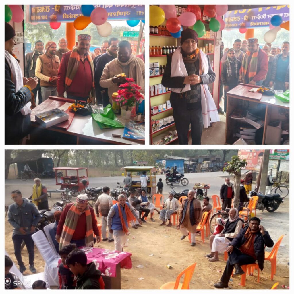 रामनगर: बाराबंकी जिले की तहसील रामनगर के अंतर्गत गणेशपुर मोड़ पर विधि विधान से पूजा अर्चना कर यादव मेडिकल स्टोर का शुभारंभ किया गया। संचालक राम ध्यान यादव ने बताया कि हमारा मुख्य उद्देश्य ग्रामीण क्षेत्रों की जनता को उचित मूल्य पर दवाएं उपलब्ध करवाना है हमारे यहां अंग्रेजी और आयुर्वेदिक दवाएं उचित मूल्य पर उपलब्ध है। इस अवसर पर कालीदीन यादव,राजेश कुमार अवस्थी(प्रधान),गोलू यादव,जिला पंचायत सदस्य प्रतिनिधि प्रवेश कुमार शुक्ला,राजेश कुमार पांडे,दिनेश कुमार पांडे,उत्तम वर्मा,राकेश वर्मा(प्रधान),राम जी यादव,अमित कुमार,गुड्डू यादव बीडीसी,अमरेश यादव,उपदेश सिंह,संदीप यादव,राजाराम यादव,सुनील कुमार त्रिवेदी,