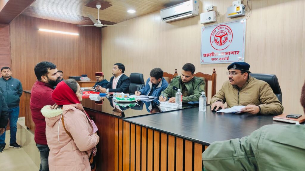 *आज दिनांक 05.01.2026 को श्रीमान जिलाधिकारी व पुलिस अधीक्षक महोदय जनपद हरदोई द्वारा सम्पूर्ण समाधान दिवस के अवसर पर तहसील सदर पर जनसुनवाई की गई । जनसुनवाई के दौरान प्राप्त जनशिकायतों के समयबद्ध व गुणवत्तापूर्ण निस्तारण हेतु सम्बन्धित को आवश्यक निर्देश दिये गए। राजस्व विभाग व पुलिस विभाग को आपस में समन्वय स्थापित कर संयुक्त टीम के माध्यम से मौके पर पहुंचकर भूमि विवादों का निस्तारण करने हेतु निर्देशित किया गया ।