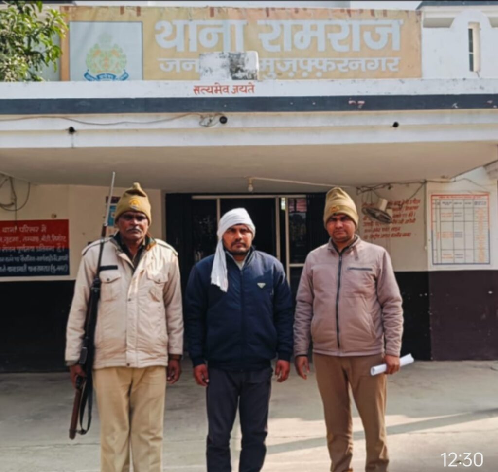 मुजफ्फरनगर, रामराज। वरिष्ठ पुलिस अधीक्षक संजय कुमार वर्मा जनपद मुजफ्फरनगर के निर्देशन में एवं थाना रामराज प्रभारी रवेंन्द्र सिंह यादव के कुशल नेतृत्व मे आज दिनांक 5.01.2026,को थाना रामराज पुलिस टीम उप निरीक्षक जयसिंहनागर, उप निरीक्षक दिनेश कुमार, कांस्टेबल जैकी, व कांस्टेबल विकास कुमार ने, 01,वांछित अभियुक्त रवीश कुमार पुत्र महेंद्र सिंह, निवासी ग्राम हासमपुर थाना रामराज मुजफ्फरनगर को टिकोला शुगर मिल पर तोल लिपिक को अपने साथियों के मिलकर मारपीट कर घायल कर दिया था। वह इसके अन्य साथियों का थाना रामराज पुलिस ने दिनांक 18,12,2025, को चालान कर जेल भेजा गया था। आज दिनांक 5,01.2026,को अभियुक्त रवीश कुमार, को उसके मकान हासमपुर से गिरफ्तार किया गया है। थाना रामराज पुलिस द्वारा अभियुक्त को समय से न्यायालय के समक्ष पेश किया जायेगा।