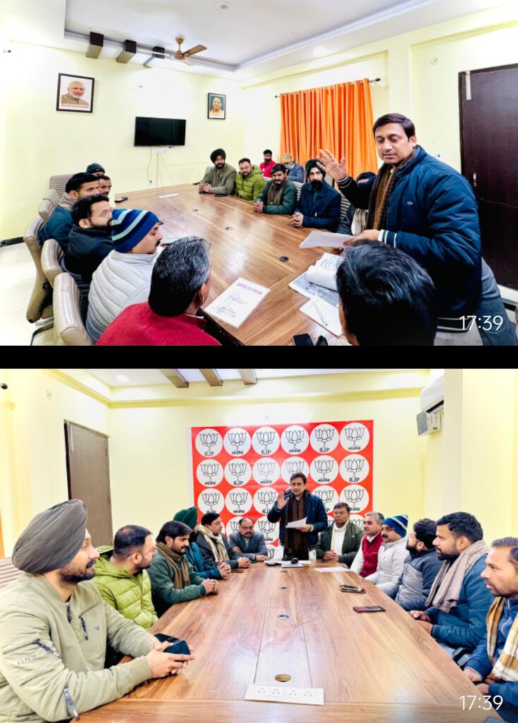 राम विहार स्थित भाजपा कार्यालय पर आयोजित बैठक में जिलाध्यक्ष हरीश गंगवार ने पदाधिकारियों व कार्यकर्ताओं को संबोधित करते हुए संगठन की मजबूती, कार्यशैली और आगामी कार्यक्रमों को लेकर विस्तृत चर्चा की। जिलाध्यक्ष हरीश गंगवार ने कहा कि भाजपा एक अनुशासित और विचारधारात्मक संगठन है, जिसकी शक्ति उसके कार्यकर्ता हैं। उन्होंने पदाधिकारियों से आह्वान किया कि वे संगठन की रीति-नीति के अनुरूप कार्य करते हुए बूथ स्तर तक संगठन को मजबूत करें। उन्होंने कहा कि प्रत्येक कार्यकर्ता की जिम्मेदारी है कि वह केंद्र और प्रदेश सरकार की जनकल्याणकारी योजनाओं को जन-जन तक पहुंचाए और आम लोगों की समस्याओं को गंभीरता से सुनकर समाधान के लिए प्रयास करे। बैठक में संगठन की कार्यशैली पर विस्तार से प्रकाश डालते हुए जिलाध्यक्ष ने समयबद्ध कार्य, नियमित बैठकें, जनसंपर्क और सोशल मीडिया के सकारात्मक उपयोग पर जोर दिया। उन्होंने कहा कि संगठनात्मक कार्यों में पारदर्शिता और अनुशासन बनाए रखना आवश्यक है, जिससे जनता का विश्वास पार्टी पर और मजबूत हो। इस अवसर पर आगामी संगठनात्मक कार्यक्रमों, बूथ सशक्तिकरण और जनसंपर्क गतिविधियों को लेकर भी रणनीति बनाई गई। पदाधिकारियों को अपने-अपने दायित्वों का ईमानदारी से निर्वहन करने और आपसी समन्वय के साथ कार्य करने के निर्देश दिए गए। बैठक में जिलाध्यक्ष हरीश गंगवार ने सभी कार्यकर्ताओं का आभार व्यक्त करते हुए कहा कि एकजुट प्रयासों से ही संगठन अपने लक्ष्यों को प्राप्त कर सकता है। इस अवसर पर जिला महामंत्री रविंद्र सिंह रवि, अशोक विश्नोई, जगपाल सिंह यादव, मोहन कुमार लोधी, तरनदीप सिंह ग्रोवर, संजय चौधरी, प्रदीप गुप्ता, रघुवीर सिंह सागर, अर्जुन रस्तोगी आदि उपस्थित रहे।