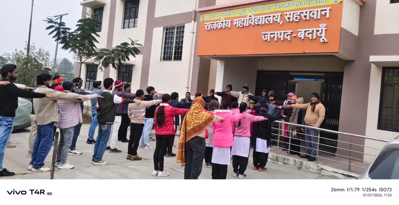 बदायूं/उत्तर प्रदेश : संघटक राजकीय महाविद्यालय सहसवान में सड़क सुरक्षा सप्ताह के अन्तर्गत शपथ ग्रहण समारोह का आयोजन किया गया। महाविद्यालय की प्राचार्य डॉ गुरुदीप सिंह उप्पल ने कहा हमें यातायात के नियमों का पालन करते हुए हेलमेट का प्रयोग अवश्य करना चाहिए तथा अपना डाइविंग लाइसेंस भी हमेशा साथ रखना चाहिए । सड़क सुरक्षा समिति प्रभारी डॉ शुभ्रा माहेश्वरी( असिस्टेंट प्रोफेसर, हिन्दी)ने विद्यार्थियों को मोटीवेट करते हुए शपथ का आयोजन किया। सभी ने संकल्प लिया कि हम सभी यातायात के नियम का पालन करते हुए देश के प्रति अपने दायित्व का निर्वहन करेंगे। विद्यार्थियों से अपील की वाहन चलाते समय हमेशा हैलमेट का प्रयोग करें।शपथ ग्रहण में डॉ रजनी गुप्ता, डॉ शुभ्रा शुक्ला (बाटनी), डॉ सौरभ नागर , डॉ नवीन कुमार,डॉ पारुल अग्रवाल,डॉ आलोक दीक्षित, डॉ टेकचंद, डॉ राजेश सिंह, डॉ सुरजीत सिंह मौर्य, डॉ ब्रह्मस्वरूप, डॉ सूर्य प्रताप गौतम आदि सहित समस्त स्टाफ उपस्थित रहे। विद्यार्थियों में आन्या साहू,ज्योति,सिद्वि, अर्चना, कार्तिकेय, तनिष्क,शानू, विष्णु ,सिया,फाजिल,बिलाल,कृष,विपिन, रितिक,शिवोम आदि विद्यार्थियों ने शपथ ली। “सड़क सुरक्षा जीवन रक्षा व हैल्मेट अपनाओ ,जीवन रक्षा पाओ “जैसे स्लोगन से विद्यार्थियों का स्वर गुंजायमान हुआ।