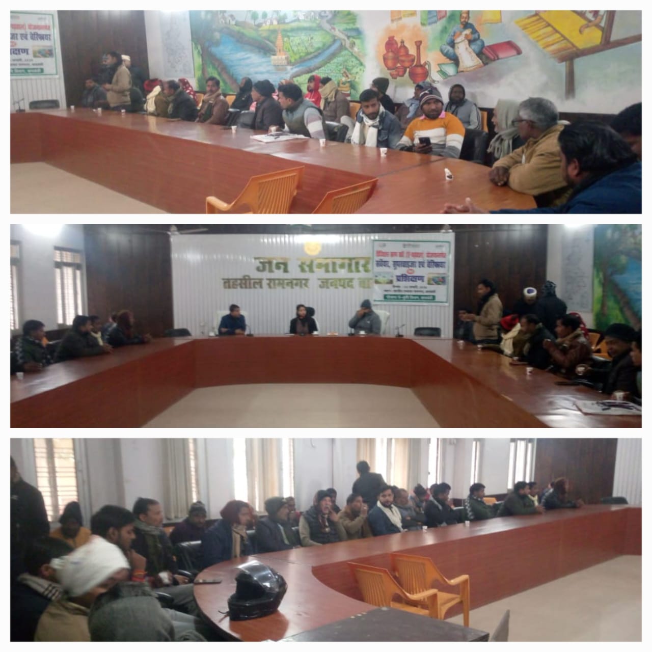बाराबंकी जिले की तहसील रामनगर में आज उप जिलाधिकारी/न्यायिक मजिस्ट्रेट गुंजिता अग्रवाल की अध्यक्षता में रामनगर तहसील के जन सभागार में कोटेदारों की एक बैठक बुलाई गई जिसमें उप जिलाधिकारी महोदया द्वारा सभी कोटेदारों से वार्ता कर अधिक से अधिक किसानों की फॉर्मर रजिस्ट्री अपनी दुकान पर बनवाने हेतु कहा गया।उप जिलाधिकारी महोदया ने बताया कि आप सभी कोटेदार ग्राम पंचायत में सभी सदस्यों एवं परिवारों को भलीभांति जानते एवं पहचानते हैं।पंचायत सहायक ,लेखपाल ,एवं स्वयं कोटेदार उक्त ऐप को डाउनलोड कर फॉर्मर रजिस्ट्री बनवाए।जब कोई कार्ड धारक आपकी दुकान पर राशन वितरण के समय राशन लेने पहुंचे तो उससे जरूर बताए कि बिना फॉर्मर रजिस्ट्री के आपकी पीएम सम्मान निधि की अगली किस्त शासन द्वारा रोक दी जाएगी।आप लोग पहले फॉर्मर रजिस्ट्री बनवाने को प्राथमिकता दे और राशन प्राप्त करें।तहसीलदार रामनगर विपुल कुमार सिंह ने बताया कि सरकार की कोई भी योजना हो आप लोगों ने जिस प्रकार सहयोग किया चाहे वह कोरोना काल हो या आयुष्मान कार्ड बनवाना या एस आई आर कार्यक्रम आप लोगों का हमेशा सहयोग रहा है।पूर्ति निरीक्षक रामनगर अनुज कुमार सिंह ने बताया कि हमे पूर्ण विश्वास है हमारे कोटेदार राशन वितरण के समय इस लक्ष्य को पूरी पारदर्शिता के साथ पूर्ण करेंगे। इस अवसर पर रामनगर तहसील के उचित दर विक्रेता,मोहम्मद नसीर,प्रेम कुमार,रवि चौहान,मो तौफीक,गजेन्द्र सिंह,कोटेदार प्रतिनिधि दीप नारायण,मनीष कुमार गौतम के अलावा अन्य कोटेदार मौजूद रहे।