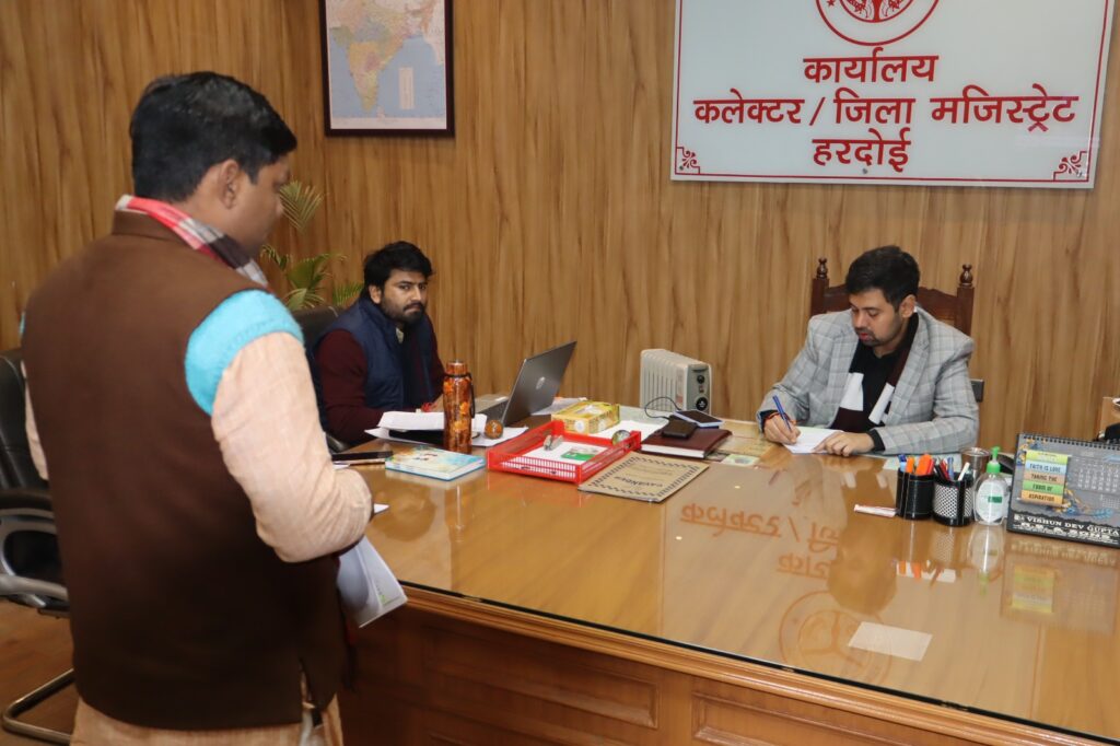 आज कलेक्ट्रेट कक्ष में जन सुनवाई के दौरान जिलाधिकारी अनुनय झा ने आमजन की समस्याओं को सुना तथा जन सुनवाई मे आज कुल 66 शिकायते प्राप्त हुई, जिसके त्वरित निस्तारण के निर्देश सम्बन्धित को दिए। जिलाधिकारी ने कहा कि प्रत्येक शिकायत का निस्तारण समयबद्व और गुणावत्तापूर्ण ढंग से हो। राजस्व विभाग के अधिकारियों से कहा कि उत्तराधिकार का कोई भी प्रकरण लंबित न रखें तथा कृषक दुर्घटना बीमा योजना के किसी आवेदन को लंबित न रखा जाये। पात्रो को योजनाओं का लाभ दिया जाये। इस अवसर पर अतिरिक्त मजिस्टेªट पूनम भाष्कर व अन्य सम्बन्धित विभाग के अधिकारी/कर्मचारी उपस्थित रहंे। पंकज राजपूत पत्रकार हरदोई