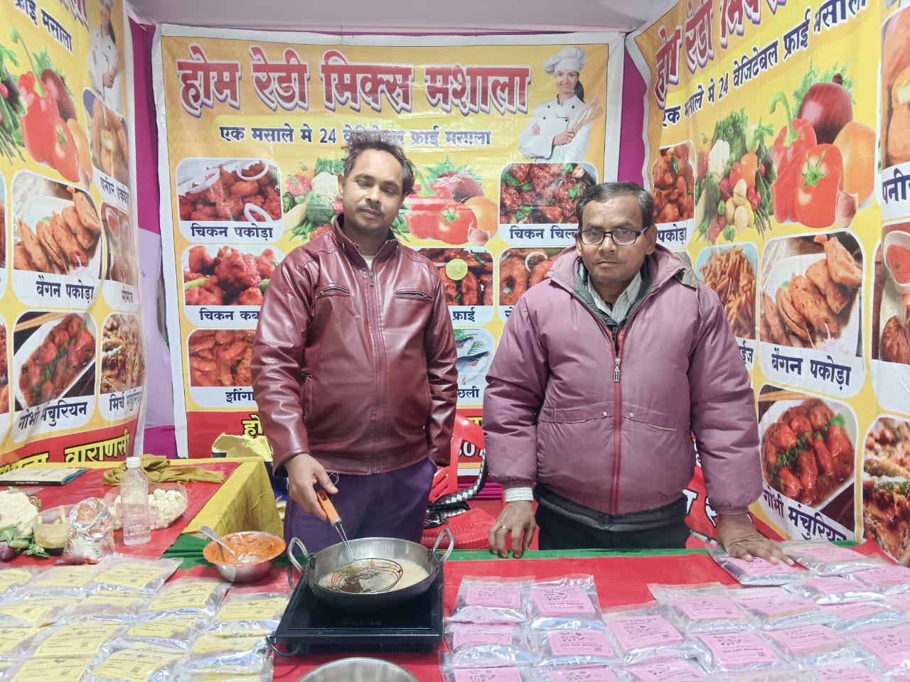 वाराणसी होम रेडी मिक्स मसाला की रुद्राक्ष वाराणसी में धूम मची है विजय सरोज और रविशंकर पांडेय ने बताया कि 10 वर्षों से मैं इस मसाले का कारोबार कर रहा हूं। हमारे यहां दो तरह के मसाले उपलब्ध है वेजिटेबल फ्राई मसाले में 24 प्रकार की चीजे फ्राई की जा सकती हैं एवं नान वेजिटेबल मसाले में भी सभी तरह के नॉन वेजीटेरियन चीज फ्राई कर सकते हैं। यह मसाला का कार्यालय मोतीझील महमूरगंज में स्थित है। ग्राहक इस मसाले की काफी तारीफ कर रहे है और इस मसाले का लुफ्त उठा रहे हैं काउंटर पर ग्राहकों की काफी संख्या में भीड़ देखने को मिल रही है।