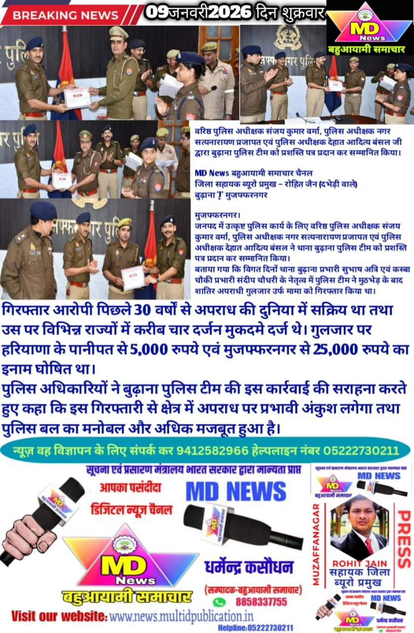 बताया गया कि विगत दिनों थाना बुढ़ाना प्रभारी सुभाष अत्रि एवं कस्बा चौकी प्रभारी संदीप चौधरी के नेतृत्व में पुलिस टीम ने मुठभेड़ के बाद शातिर अपराधी गुलजार उर्फ मामा को गिरफ्तार किया था।