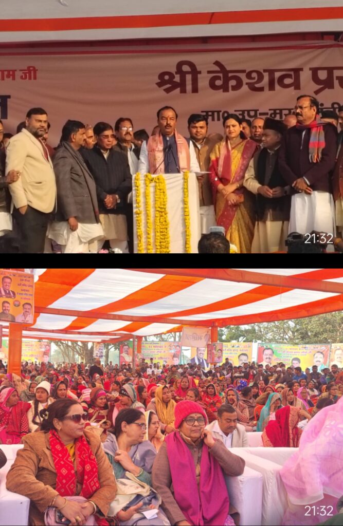 फतेहाबाद आगरा सती माता मंदिर परिषद में भाव जनसभा उपमुख्यमंत्री केशव प्रसाद मौर्य ने बताया है बीबी जी राम जी बिल गरीबों किसानों के लिए वरदान