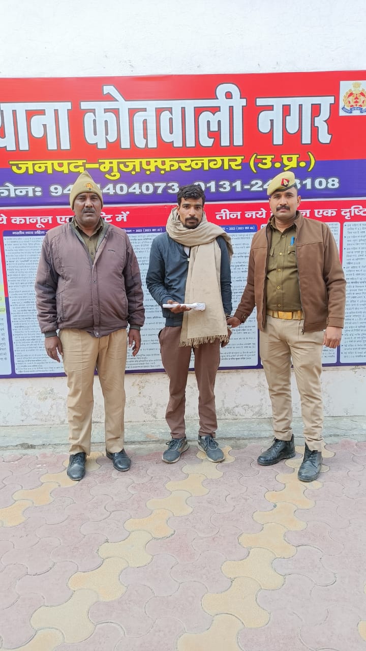 मुजफ्फरनगर, थाना कोतवाली। वरिष्ठ पुलिस अधीक्षक जनपद मुज़फ्फरनगर संजय कुमार वर्मा के निर्देशन में एंव थाना कोतवाली प्रभारी के कुशल नेतृत्व में जनपद मे शातिर अभियुक्तो के विरूद्ध चलाये जा रहे अभियान के दौरान दिनांक 10.01.2026,को थाना कोतवाली नगर पुलिस टीम के ने चरथावल से न्याजुपुरा रोड पर मन्दिर के पीछे करीब 50 मीटर थाना कोतवाली नगर मुजफ्फरनगर से अभियुक्त विकास पुत्र विजय निवासी गौशाला मौहल्ला थाना कोतवाली नगर मुजफ्फरनगर को, 01, तमंचा 315 बोर व 01 जिन्दा कारतूस 315 बोर के साथ गिरफ्तार किया गया। थाना कोतवाली नगर पुलिस द्वारा अभियुक्त के खिलाफ अग्रिम विधिक कार्यवाही की जा रही है।