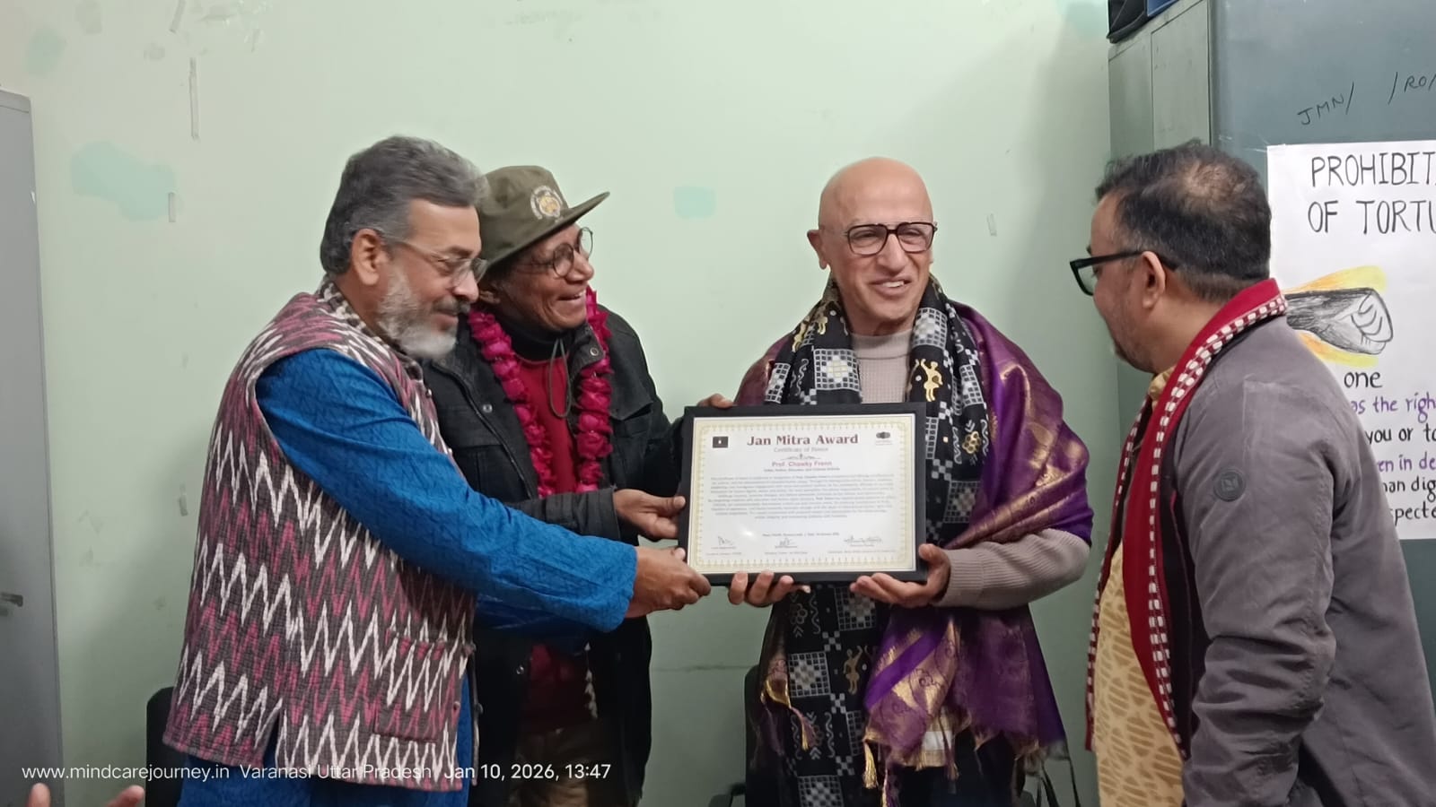 यह सम्मान पूर्व जन मित्र सम्मान प्राप्तकर्ताओं Chandra Mishra तथा Suresh Nair के कर-कमलों द्वारा प्रदान किया गया। यह क्षण न्याय, लोकतंत्र और मानवीय मूल्यों के लिए सतत संघर्ष की परंपरा और एकजुटता का प्रतीक रहा।जन मित्र सम्मान समारोह का आयोजन 10 जनवरी 2026 को दोपहर 1:00 बजे, पीवीसीएचआर कार्यालय, पांडेयपुर, वाराणसी में किया गया। कार्यक्रम का संयुक्त आयोजन People’s Vigilance Committee on Human Rights (PVCHR), Jan Mitra Nyas तथा Mirza Ghalib Literature & Art Global Club द्वारा किया गया।जन मित्र सम्मान उन व्यक्तित्वों को प्रदान किया जाता है जिन्होंने कला, संस्कृति और शिक्षा को मानव गरिमा और सामाजिक न्याय की रक्षा का सशक्त माध्यम बनाया है। प्रो. फ्रेन की कला ने युद्ध, सत्ता, पूंजी और बहिष्करण की अमानवीय संरचनाओं को चुनौती देते हुए हाशिये पर खड़े समुदायों की आवाज़ को वैश्विक मंच दिया है।