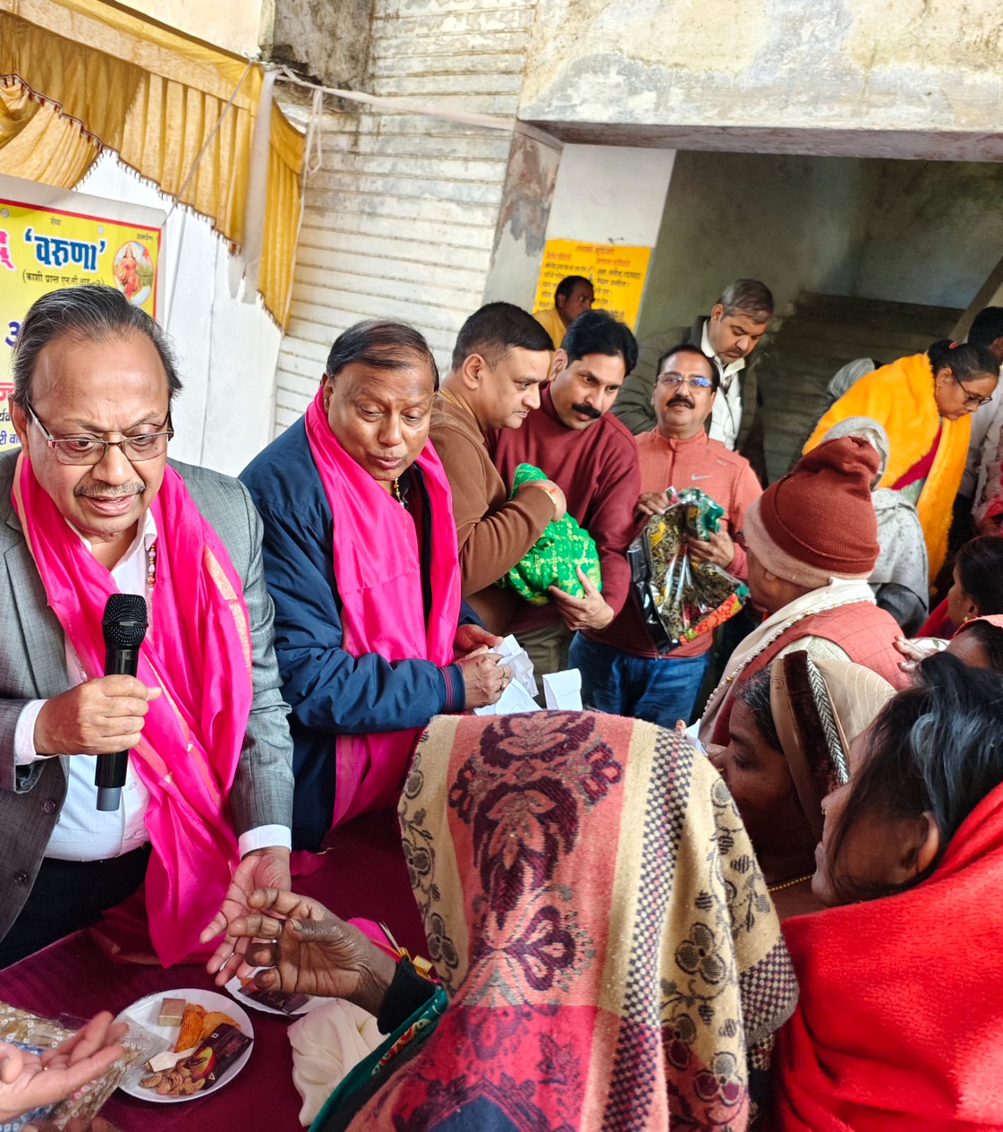 रोटरी गंगा द्वारा कंबल एवं साड़ी का वितरण।