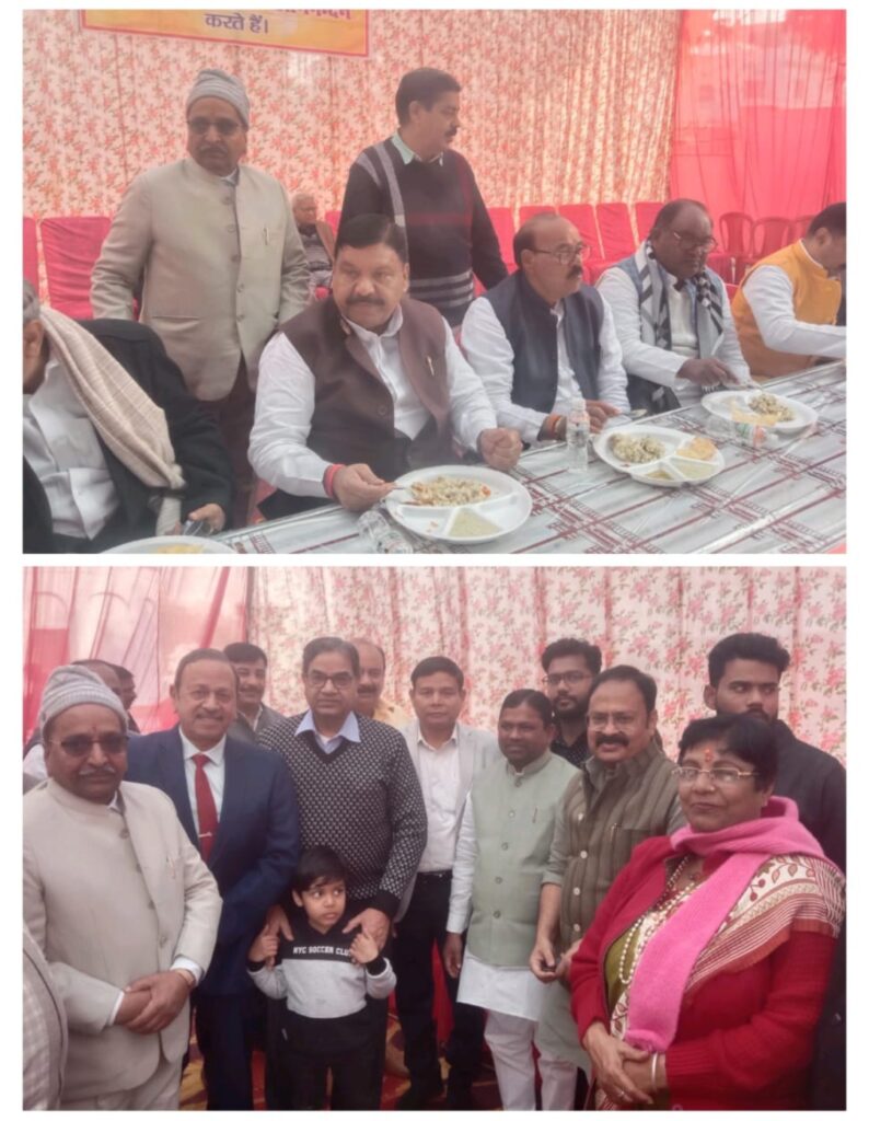 बाराबंकी- श्री नागेश्वर नाथ मंदिर प्रांगण में समरसता खिचड़ी भोज का आयोजन वैश्य समाज बाराबंकी द्वारा किया गया उक्त कार्यक्रम में अरविंद कुमार सिंह गोप पूर्व मंत्री, पूर्व सांसद पीएल पुनिया, वर्तमान सांसद तनुज पुनिया, पूर्व सांसद उपेंद्र सिंह रावत, हरगोविंद सिंह,एमएलसी अंगद कुमार सिंह, फराज किदवई, उमेर किदवई,डॉक्टर हरिनाम सिंह, डॉक्टर शशि जायसवाल, पवन वैश्य,पवन जैन, पूर्व ब्लाक प्रमुख सुरेंद्र सिंह वर्मा,सदर विधायक सुरेश यादव, भाजपा नेता अरविंद मौर्या ,संतोष सिंह, संदीप गुप्ता, उत्तम गुप्ता, पवन जैन ,पवन वैश्य, प्रदीप जैन, कुंज बिहारी गुप्ता, देवी शरण गुप्ता, ओपी गुप्ता, अनिल अग्रवाल, अनुज अग्रवाल, अनुराग अग्रवाल, पंकज गुप्ता पंकी, डॉ विवेक वर्मा व पत्रकार रामानन्द गुप्ता पत्रकार विशाल गुप्ता एवं नगर के तमाम सम्भ्रांत नागरिक उपस्थित रहे व खिचड़ी भोज का आनंद लिया कार्यक्रम संयोजक दिलीप गुप्ता एडवोकेट ने सबका आभार व्यक्त किया व समस्त नगर वासियों को खिचड़ी भोज की बधाई दी