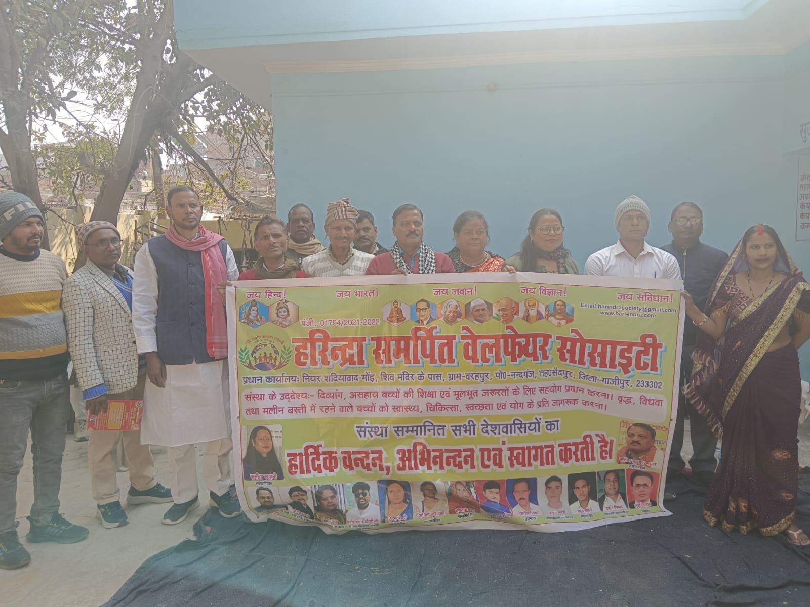 हरिंद्रा समर्पित वेलफेयर सोसाइटी वाराणसी द्वारा कम्बल एवं गुड़, लाई,तिल बांटा गया।
