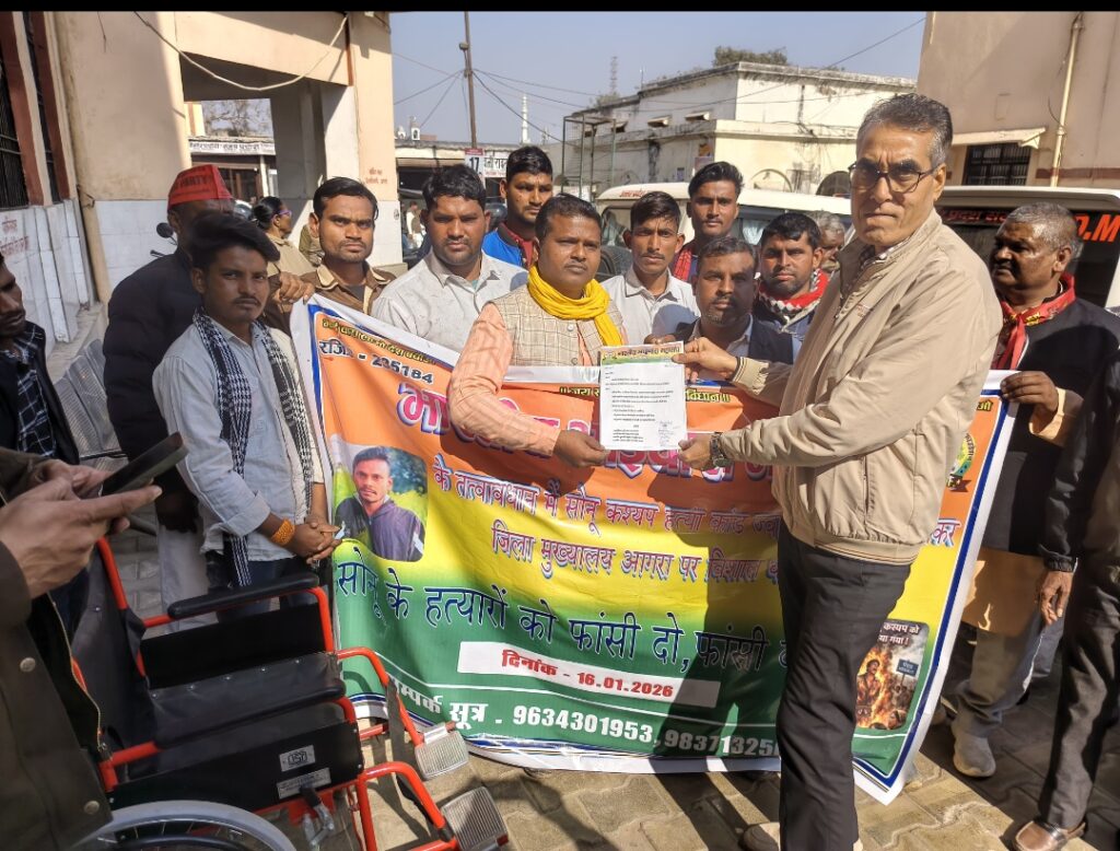 भारतीय भाईचारा महासंघ द्वारा जिला मुख्यालय आगरा पर सोनू कश्यप हत्याकांड को लेकर सौंपा ग्यापन