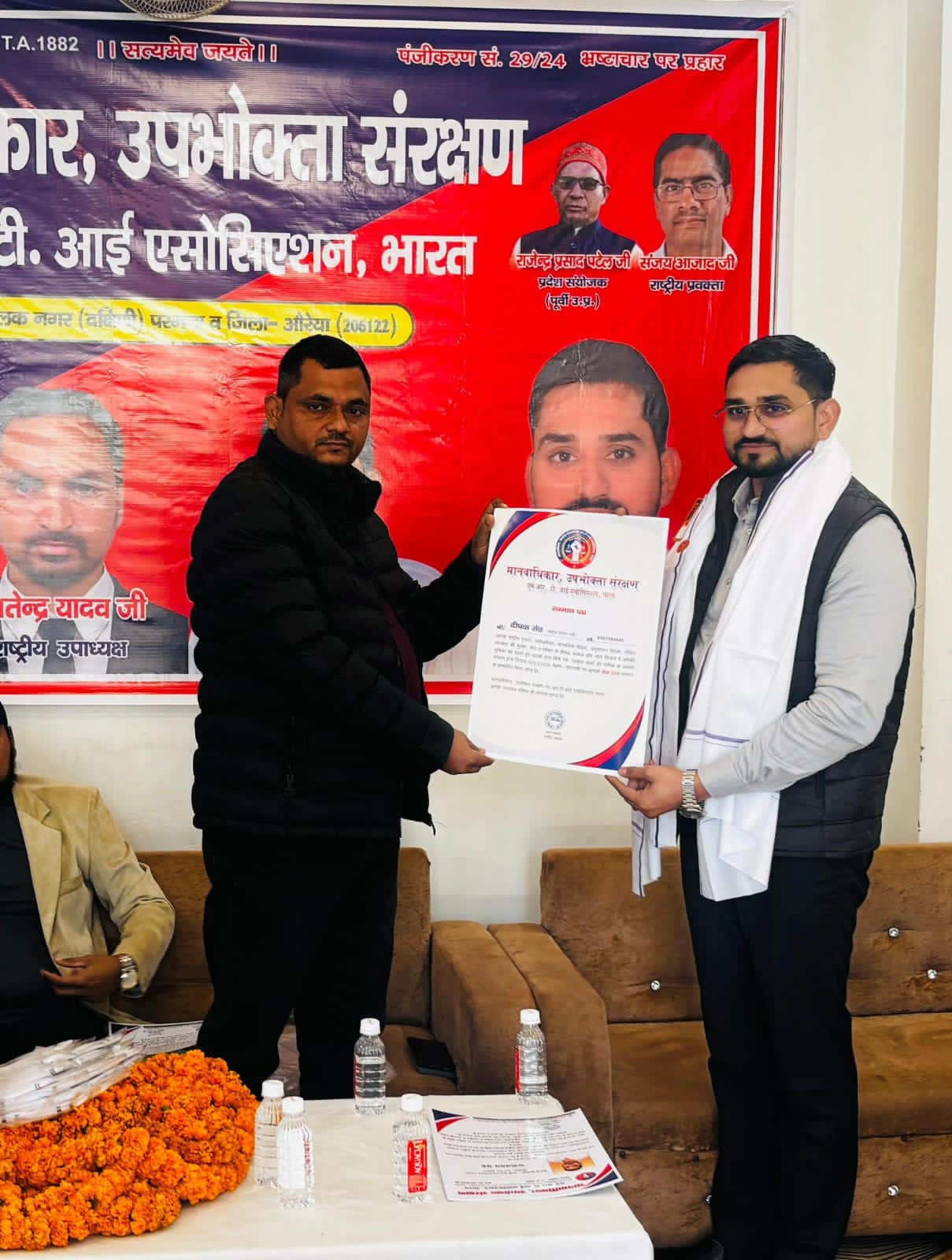 वाराणसी एसोसिएशन के राष्ट्रीय अध्यक्ष ज्ञान प्रकाश रहे मुख्य अतिथि,मानवाधिकार,उपभोक्ता संरक्षण एवं आर.टी.आई. एसोसिएशन,भारत (पंजी0) की बैठक राष्ट्रीय संगठन मंत्री दीपक सेठ के नेतृत्व मे सम्पन्न हुई। जिसमें एसोसिएशन के राष्ट्रीय अध्यक्ष एवं मुख्य अतिथि ज्ञान प्रकाश ने उपस्थिति पदाधिकारीगण व सदस्यगण को संगठन के उद्देश्यों व नीतियों के विषय में विस्तारपूर्वक समझाया और मानवाधिकार, उपभोक्ता संरक्षण व सूचना का अधिकार का अधिनियम के बारे में जागरूक किया। कार्यक्रम में विशिष्ट अतिथि के रूप में उपस्थित राष्ट्रीय उपाध्यक्ष, राष्ट्रीय सचिव व राष्ट्रीय कार्यकारिणी सदस्य ने भ्रष्टाचार के विरुद्ध मुहिम चलाने के लिए प्रेरित किया। राष्ट्रीय अध्यक्ष ने वाराणसी जिलाध्यक्ष अभिषेक पटेल सहित मौजूद सभी पदाधिकारी व सदस्य को नियुक्ति पत्र देकर एवं जन सेवा में उत्कृष्ट कार्य करने के लिए राष्ट्रीय संगठन मंत्री दीपक सेठ व राष्ट्रीय कार्यकारिणी सदस्य अशोक वर्मा को #सेवारत्न पत्र देकर सम्मानित किया बैठक में मुख्य रूप से एसोसिएशन के राष्ट्रीय संगठन मंत्री दीपक सेठ ने उपस्थिति सदस्यगण को संगठन विस्तार पर जोर देने व संगठन, मानवहित के विषय में महत्वपूर्ण जानकारी प्रदान की एवं मुख्य अथिति राष्ट्रीय अध्यक्ष ज्ञान प्रकाश , राष्ट्रीय उपाध्यक्ष जितेन्द्र व राष्ट्रीय सचिव नितेश को काशी विश्वनाथ जी की प्रतिमा की शील्ड देकर सम्मानित किया, बैठक में उपस्थित सभी का आभार व्यक्त करके बैठक का समापन किया।
