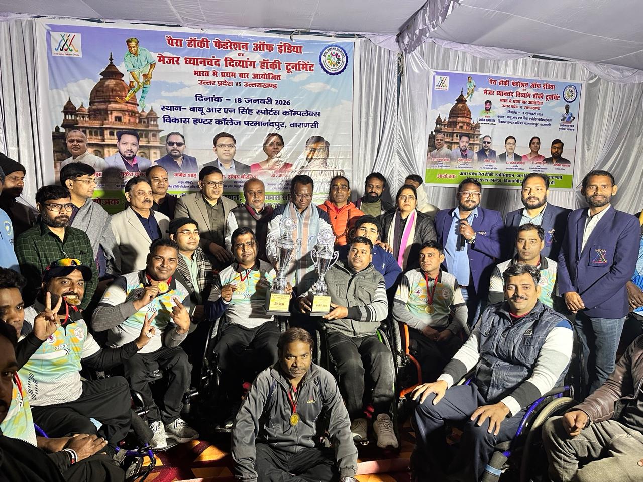 वाराणसी।पैरा हॉकी फेडरेशन ऑफ इंडिया के तत्वावधान में उत्तर प्रदेश पैरा हॉकी एसोसिएशन द्वारा डॉ. मेजर ध्यानचंद दिव्यांग पैरा हॉकी टूर्नामेंट का आयोजन आज दिनांक 18 जनवरी 2026 को वाराणसी स्थित बाबू आर.एन. सिंह स्पोर्ट्स कॉम्प्लेक्स, विकास इंटर कॉलेज, परमानंदपुर में भव्य एवं सफलतापूर्वक संपन्न हुआ। यह टूर्नामेंट उत्तर प्रदेश बनाम उत्तराखण्ड के बीच खेला गया और यह भारत में पहली बार आयोजित होने वाला इस प्रकार का ऐतिहासिक दिव्यांग हॉकी आयोजन रहा। इस विशेष आयोजन के संरक्षक वरिष्ठ खेल प्रशासक अशोक कुमार सिंह रहे, जिनके मार्गदर्शन में कार्यक्रम को नई ऊँचाई मिली।