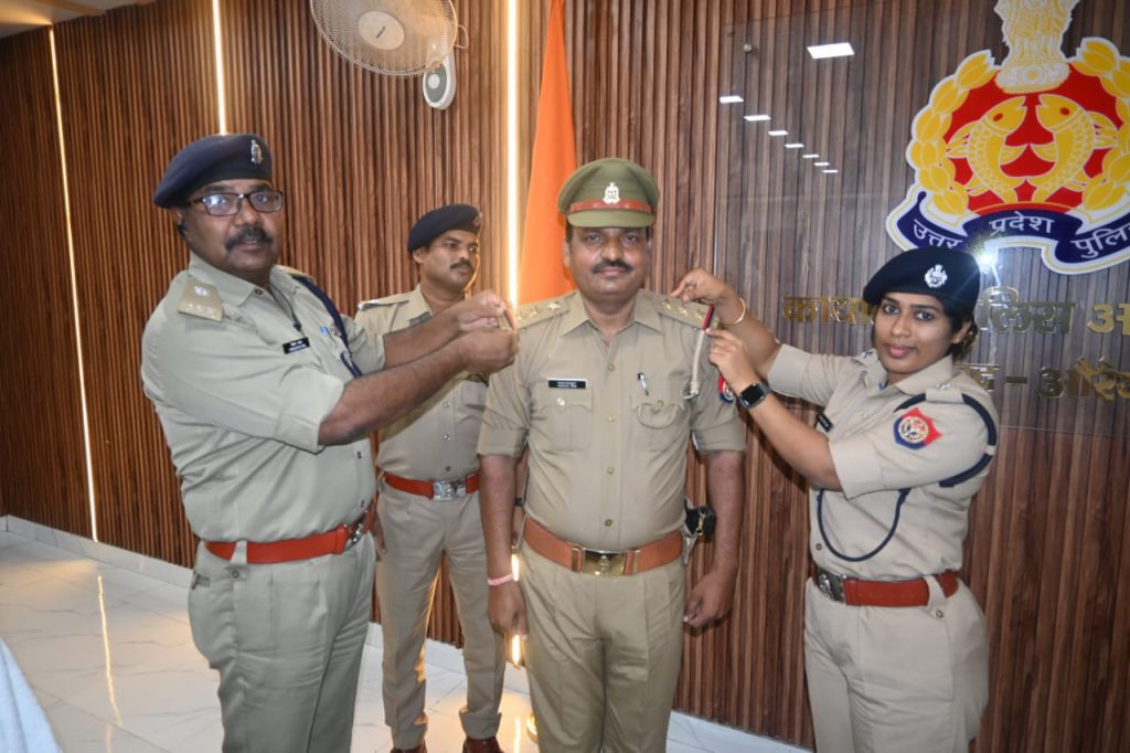 Share this: Click to share on Facebook (Opens in new window) Facebook Click to share on X (Opens in new window) X Click to share on LinkedIn (Opens in new window) LinkedIn Click to share on X (Opens in new window) X Click to share on WhatsApp (Opens in new window) WhatsApp Click to print (Opens in new window) Print Post navigation *निरीक्षक पद पर पदोन्नति*- कर्तव्यनिस्ठा व लगनशीलता के साथ कार्य करने वाले उ0नि0गणों की निरीक्षक पद पर पदोन्नति होने पर आज दिनांक 27.06.2022 को पुलिस अधीक्षक औरैया श्रीमती चारू निगम द्वारा पुलिस मुख्यालय ककोर में पदोन्नति हुए 04 अधिकारीगणों 1. नि0 भोला प्रसाद, 2. नि0 देवेन्द्र कुमार शर्मा, 3. नि0 राजपाल सिंह, 4. नि0 मानवेन्द्र सिंह को स्टार लगाकर सम्मानित किया गया एवं शुभकामनाएं देते हुए नई जिम्मेदारियों को और अधिक कर्तव्यनिष्ठा के साथ निर्वहन हेतु प्रोत्साहित किया गया तथा निरन्तर लगनशीलता के साथ कार्य करने हेतु प्रेरित किया गया। इस मौके पर अपर पुलिस अधीक्षक औरैया श्री शिष्यपाल व डी0वाई0एस0पी0(प्रशिक्षु) समेत अन्य अधिकारी/कर्मचारीगण उपस्थित रहें। हर घर तिरंगा अभियान में सहयोग करते हुए दास कॉलेज ने 1200 और गिन्दो देवी महिला महाविद्यालय ने दिया 500 तिरंगे संग्रह केंद्र में जमा किए