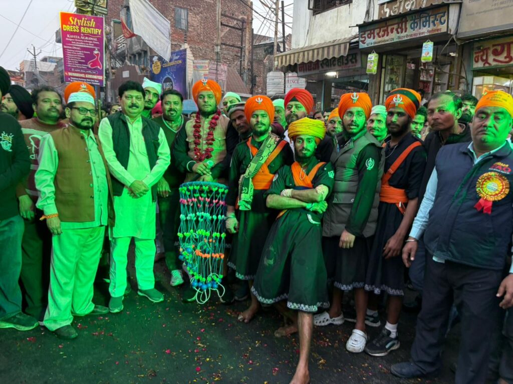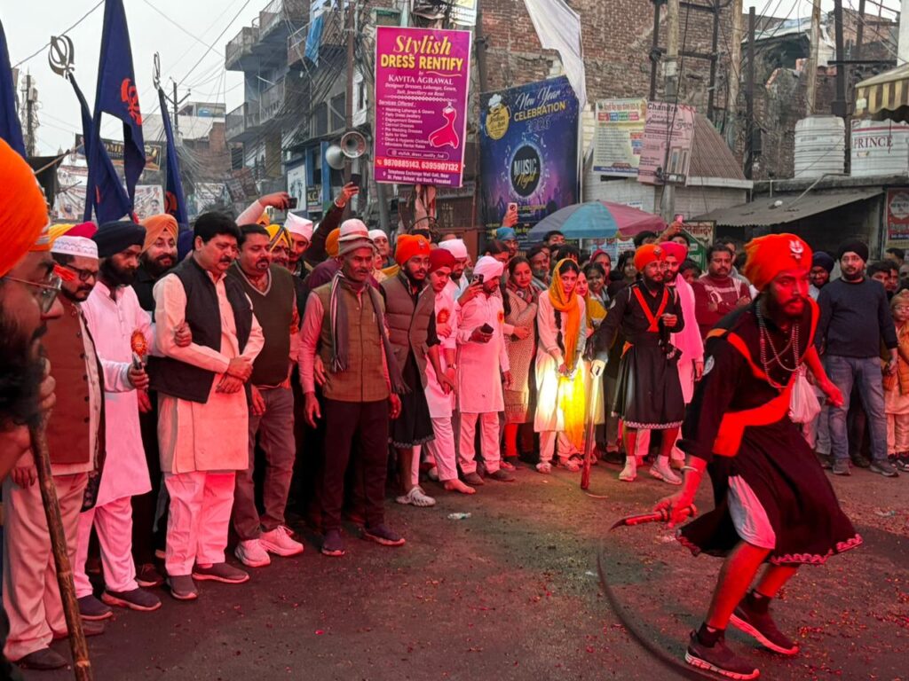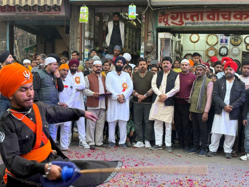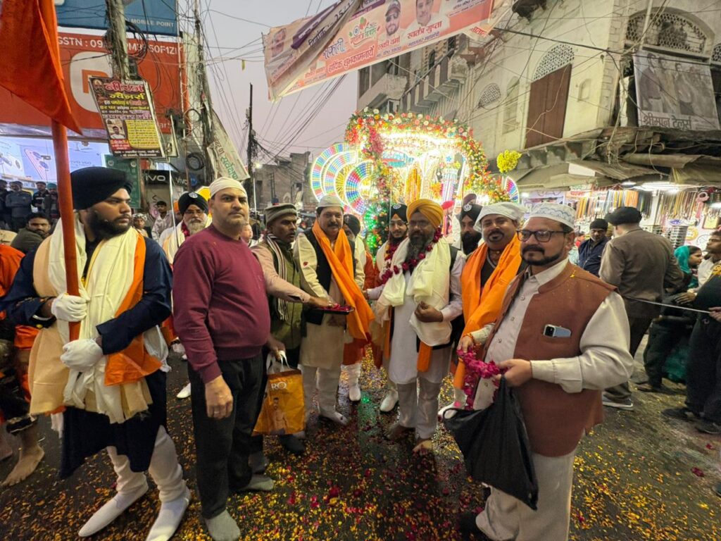 मोहम्मद इरफान उप रिपोर्टिंग प्रभारी थाना रामगढ़ एम डी न्यूज फिरोजाबाद .आज फिरोजाबाद में सिखों के 10 वे गुरु श्री गुरु गोविंद सिंह जी महाराज जी का 359 वा प्रकाश पर्व (जन्मदिवस) के उपलक्ष्य में एक विशाल नगर कीर्तन निकाला गया.जिसकी शुरुआत सुबह गुरूद्वारा साहिब जी में पाठ कीर्तन व अरदास के बाद प्रारंभ हुआ नगर कीर्तन की शुरुआत प्रात लगभग 11:30 बजे से फिरोजाबाद का प्रमुख गुरुद्वारा स्टेशन रोड से प्रारंभ होकर गांधी पार्क चौराहा, बस स्टैंड, सुभाष पार्क चौराहा, सर्विस रोड से होते हुए आर्य नगर, जलेसर रोड, बर्फ खाना चौराहा, सेंट्रल चौराहे से होते हुए वापस गांधी पार्क होते हुए स्टेशन रोड गुरुद्वारा पर समापन हुआ फिरोजाबाद के सिख धर्म गुरु गुरुद्वारा सहाब के हेड ज्ञानी करनैल सिंह जी, आगरा से आए सिख धर्म गुरु पांच प्यारों 1, ज्ञानी इंद्रजीत सिंह जी, 2, ज्ञानी हरमनिंदर सिंह जी, 3, ज्ञानी अमनदीप जी, 4,ज्ञानी कमलजीत सिंह जी, 5,ज्ञानी बलविंदर सिंह जी, साध संगत की अगुवाई में नगर कीर्तन प्रारम्भ हुआ. नगर के कीर्तन यात्रा में अनेकों डोले चल रहे थे, और दूर-दूर से अन्य जिलों से लोगों ने शिरकत की अलीगढ़ आगरा इटावा टूंडला शिकोहाबाद जसवंतनगर आदि जगहों से श्री गुरु गोविंद सिंह जी के प्रेमी शामिल हुए नगर कीर्तन यात्रा का जगह-जगह स्वागत किया गया, सेंट्रल चौराहे पर करबला कमेटी के अध्यक्ष हिकमत उल्ला खान, किड्स कॉर्नर स्कूल के डायरेक्टर डॉ मयंक भटनागर, शहजादुद्दीन, तारिक फारुकी, तोहा उल्लाह खान, अकील पठान, शाहनवाज अंसारी, आदि मुस्लिम समाज ने यात्रा में चल रहे प्रमुख धर्म गुरुओं का पुष्प वर्षा करके शाल उड़ाकर माला पहनकर शीतल जल मिष्ठान खिलाकर जोरदार स्वागत किया, सुबह से ही फिरोजाबाद गुरुद्वारा प्रबंधक कमेटी के प्रधान सरदार हरबंस सिंह मल्होत्रा जी की देखरेख में पूरी टीम के साथ व्यवस्थाओं को देखते रहे गुरुद्वारा हेड ज्ञानी करनैल सिंह. गुरुद्वारा प्रबंधक हरबंस सिंह अच्छी व्यवस्थाओं को लेकर फिरोजाबाद के जिलाधिकारी महोदय, वरिष्ठ पुलिस अधीक्षक महोदय, नगर निगम और उनकी पूरी टीम का धन्यवाद किया,आभार व्यक्त किया करबला कमेटी के अध्यक्ष हिकमत उल्ला खान ने कहां के फिरोजाबाद सिख धर्मगुरु हेड गुरुद्वारा ज्ञानी करनैल सिंह जी और पांचो प्यारों धर्म गुरुओं ने ( गुरु घर का आशीर्वाद सरोफा) ऑरेंज पट्टिका सिर्फ मुझे हिकमत उल्ला खान, डॉ मयंक भटनागर को पहनाकर सैकड़ो लोगों के बीच सम्मानित किया जिसका सभी सिख धर्म गुरुओं आभार व्यक्त किया.