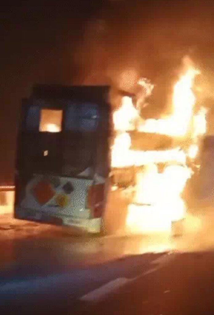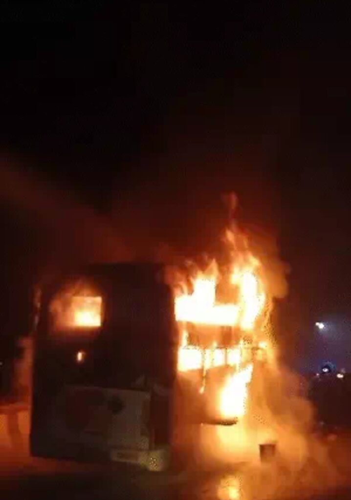एमडी न्यूज़मथुराअपराध रिपोर्टर प्रभारी शुभम सोनी धू-धू कर जली,खिड़की दरवाजे से कूदे यात्री; कानपुर से दिल्ली जा रही थीयूपी के मथुरा में यमुना एक्सप्रेस-वे पर गुरुवार सुबह 5.15 बजे एक चलती बस में भीषण आग लग गई। आग लगते ही यात्रियों में अफरा-तफरी मच गई। चीख-पुकार के बीच यात्रियों ने खिड़की दरवाजों से कूदकर अपनी जान बचाई। स्लीपर बस कानपुर से दिल्ली जा रही थी। बस में 10 यात्री सवार थे।घटना हराया थाना क्षेत्र के अंतर्गत यमुना एक्सप्रेसवे के माइलस्टोन 110 के पास हुई। सूचना मिलते ही स्थानीय पुलिस और एक्सप्रेसवे की टीम भी घटनास्थल पर पहुंची और हालात को नियंत्रित करने में जुट गई। फायर ब्रिगेड की गाड़ियों ने काफी मशक्कत के बाद आग पर काबू पाया।आग लगने के कारणों की जांच की जा रही है। मौके पर राहत और बचाव कार्य जारी है। पुलिस ने बताया- सभी यात्री सुरक्षित हैं। उन्हें दूसरी बस में बैठाकर भेज दिया गया है।8 बसें 3 कारें टकराई थीं, 13 जिंदा जले थेइससे पहले यमुना एक्सप्रेस-वे पर पिछले महीने कोहरे के चलते 8 बसें और 3 कारें भिड़ गई थीं। टक्कर होते ही गाड़ियों में आग लग गई थी। 13 लोगों की जलकर मौत हो गई थी। 70 लोग घायल हुए थे। हादसा इतना वीभत्स था कि पुलिस शवों को 17 पॉलिथीन बैग में भरकर ले गई थी। डीएनए टेस्ट से इनकी पहचान की गई थी।हादसा थाना बलदेव क्षेत्र में माइलस्टोन 127 पर हुआ था। पुलिस, फायर ब्रिगेड और SDRF के 50 जवानों और 9 थानों की पुलिस ने 6 घंटे में रेस्क्यू ऑपरेशन पूरा किया था। हादसे के चलते एक्सप्रेस-वे पर 3 किमी लंबा जाम लग गया था। हादसे की मजिस्ट्रेट जांच कराई गई थी। ADM प्रशासन अमरेश ने जांच का नेतृत्व किया था।