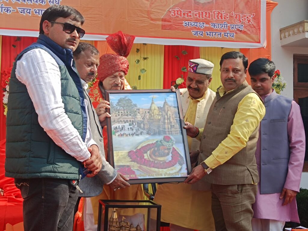मंच पर उपस्थित सभी गणमान्य अतिथियों को पगड़ी और अंग वस्त्र पहनाकर सम्मानित किया गया। लगभग 5000 लोगों की उपस्थिति में राष्ट्रगान, गायत्री मंत्र और महामृत्युंजय मंत्र का जाप किया गया। जय भारत मंच के काशी प्रांत अध्यक्ष उपेंद्र सिंह ने देश में सर्व समाज की एकता पर जोर दिया और मंच से एकता का उद्घोष किया।