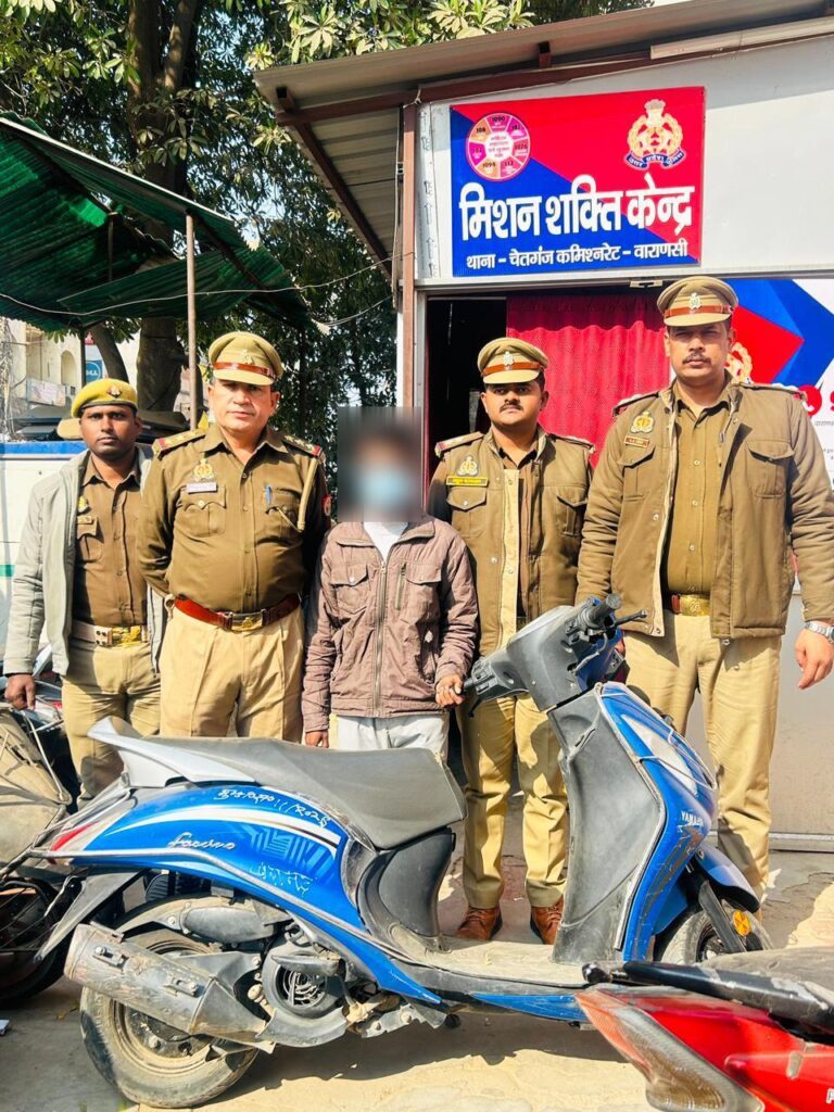 संवाद दाता:-सलीम जावेद वाराणसी।दिनांक 22/01/2026 पुलिस आयुक्त द्वारा कमिश्नरेट वाराणसी में अपराध एवं अपराधियों पर प्रभावी अंकुश लगाये जाने हेतु दिये गये निर्देशों के अनुपालन में पुलिस उपायुक्त काशी जोन के निर्देशन में व अपर पुलिस उपायुक्त, काशी जोन, के पर्यवेक्षण में व सहायक पुलिस आयुक्त चेतगंज व प्रभारी निरीक्षक चेतगंज के नेतृत्व में थाना चेतगंज पुलिस द्वारा मुखबिर की सूचना के आधार पर एक अभियुक्त शुभम विश्वकर्मा पुत्र नीबू लाल विश्वकर्मा निवासी नदेसर थाना कैट वाराणसी उम्र 26 वर्ष सम्पूर्णानन्द संस्कृत विश्वविद्यालय की दीवार के किनारे से गिरफ्तार किया गया है। तथा चोरी की स्कूटी बरामद हुँयी। उक्त गिरफ्तारी व बरामदगी के सम्बन्ध में थाना चेतगंज पुलिस द्वारा आवश्यक विधिक कार्यवाही की जा रही है।पूछताछ से अभियुक्त ने अपना नाम शुभम विश्वकर्मा पुत्र नीबू लाल विश्वकर्मा निवासी एस 17/95. नंदेसर थाना कैट वाराणसी का रहने वाला बताया। स्कूटी के बारे में कड़ाई से पूछताछ की गई तो उसने बताया कि यह स्कूटी मेरी ही है, मैने ही इस स्कूटी को मुनाफे के लिए दिनांक 15/12/2025 को काशी बाइक बाजार जंगतगंज वाराणसी में 17,000/- रू में बेच दिया था, बाद में मैने अपने भाई के साथ मिलकर दिनांक 16/12/2025 को दोपहर 12.00 से 01.00 बजे के बीच काशी बाइक बाजार से चुरा लिया। अभियुक्त द्वारा किया गया यह कार्य अन्तर्गत 303(2), 317(2) BNS का दण्डनीय अपराध है, जिसका बोध कराते हुए अभियुक्त शुभम विश्वकर्मा उपरोक्त को पुलिस हिरासत मे लिया। पंजीकृत अभियोग का विवरण- मु0अ0सं0-0011/2026, धारा 303(2), 317 (2) बीएनएस थाना चेतगंज कमिश्नरेट वाराणसी।गिरफ्तार अपराधी का विवरण- चोरी की स्कूटी मॉडल एमहा फासीनो गाड़ी संख्या UP65DD5094गिरफ्तार/सराहनीय कार्य करने वाली पुलिस टीम का विवरण- प्र0नि0 श्री विजय कुमार शुक्ला थाना चेतगंज कमिश्नरेट वाराणसी,उ0नि0 श्री राहुल बरनवाल थाना चेतगंज ,उ0नि0 संदीप कुमार सिंह चौकी प्रभारी नाटीइमली थाना चेतगंज ,आरक्षी पुनीत कुमार थाना चेतगंज , आरक्षी अश्वनी सिंह सर्विलांस सेल कमिश्नरेट वाराणसी।