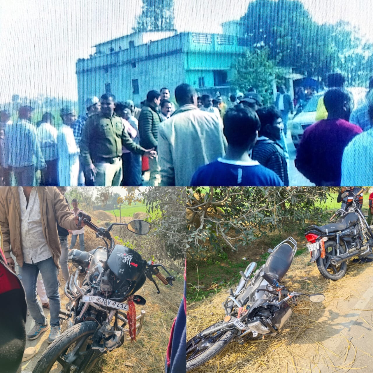 महराजगंज। सिंदुरिया थाना क्षेत्र अंतर्गत चिउटहा चौकी के पास दिनांक 23 जनवरी को उस समय अफरा-तफरी मच गई, जब मिठौरा बाजार से निकले यज्ञ जुलूस के दौरान निचलौल–चिउटहा मार्ग पर दो बाइकों की आमने-सामने जोरदार भिड़ंत हो गई।हादसा इतना भयावह था कि दोनों बाइकों पर सवार चारों युवक सड़क पर गिर पड़े। बताया जा रहा है कि दोनों घायल मिठौरा के निवासी हैं, जबकि दो युवक घुघली क्षेत्र के रहने वाले बताए जा रहे हैं। टक्कर में सभी बाइक सवार गंभीर रूप से घायल हो गए, जिनमें से एक की हालत नाजुक बताई जा रही है।