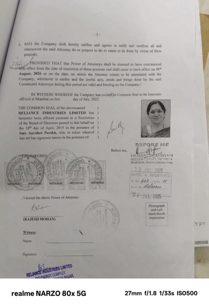 श्री मनीष मेहरोत्रा की तरफ से वरिष्ट अधिवक्ता रणधीर सिंह सुमन ने मुकेश अम्बानी की तरफ से पेश उनकी सेक्रेट्री सावित्री पारिख जी की पावर ऑफ अटार्नी का विरोध किया, उन्होने अपनी दलील में कहा की आपराधिक मामले में पावर ऑफ अटार्नी दी ही नही जा सकती सिविल मामले में पावर ऑफ अटार्नी दी जा सकती है। रिलायन्श इन्डस्ट्रीज के वकील ने कहा कि अगर पावर ऑफ अटार्नी नही दी जा सकती तो मुकेश अम्बानी पूरे देश में कहा-कहा खडे होंगे।