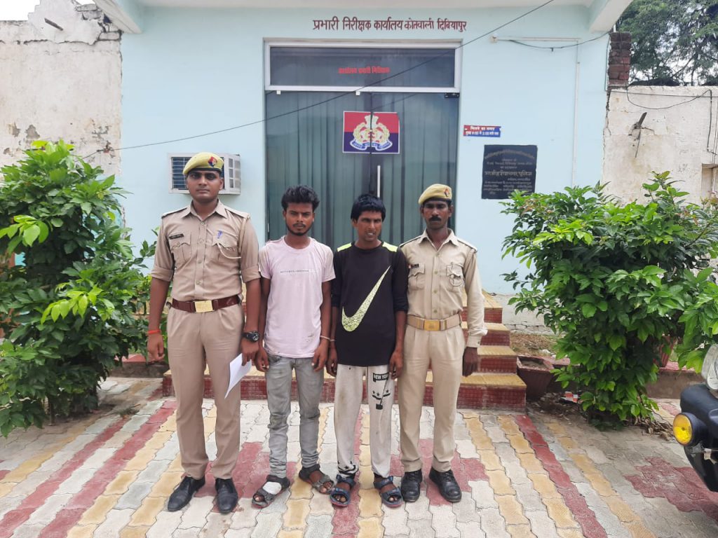 पुलिस अधीक्षक औरैया श्रीमती चारू निगम व अपर पुलिस अधीक्षक औरैया श्री शिष्यपाल के कुशल निर्देशन में वांछित/वारंटी अभियुक्तों की धड़पकड़ हेतु चलाये जा रहे अभियान के क्रम में व क्षेत्राधिकारी सदर श्री सुरेन्द्रनाथ याद्व के निकट पर्यवेक्षण में तथा थाना प्रभारी दिबियापुर श्री शशिभूषण मिश्र के नेतृत्व में थाना दिबियापुर पुलिस टीम ने गश्त/चेकिंग के दौरान वांछित अभियुक्तगण 1- बबलू पुत्र घासीराम निवासी झावर का पुर्वा थाना दिबियापुर जनपद औरैया 2- रिंकू उर्फ अमित यादव पुत्र सोनवीर निवासी साईं मंदिर के पास विकास कुंज थाना दिबियापुर जिला औरैया संबंधित मु0अ0सं0 377/22 धारा 379/411 आईपीसी को गिरफ्तार कर माननीय न्यायालय औरैया के समक्ष पेश किया गया।